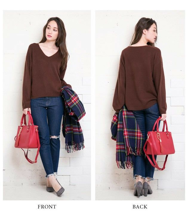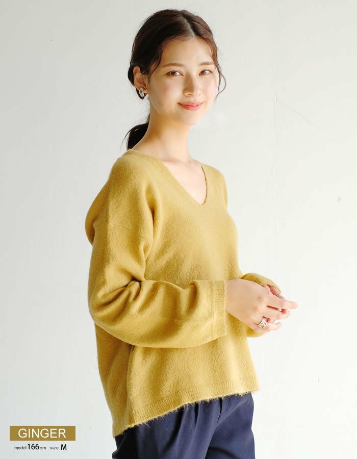 【最終値下げ価格】Vネック裏ファーニットトップス レディース 秋 冬 M L LL 長袖 | アクアガレージ aquagarage