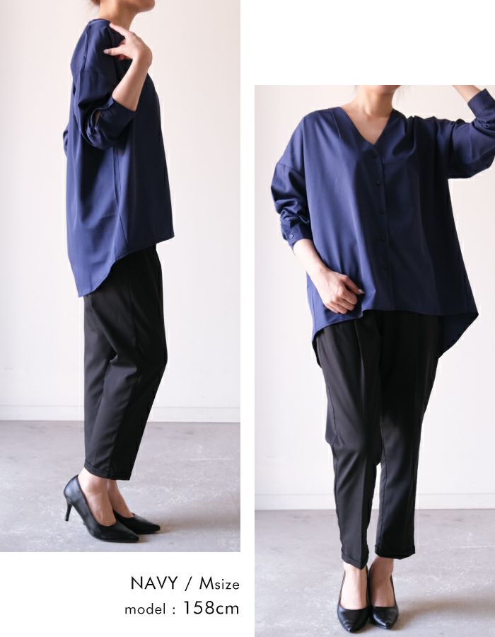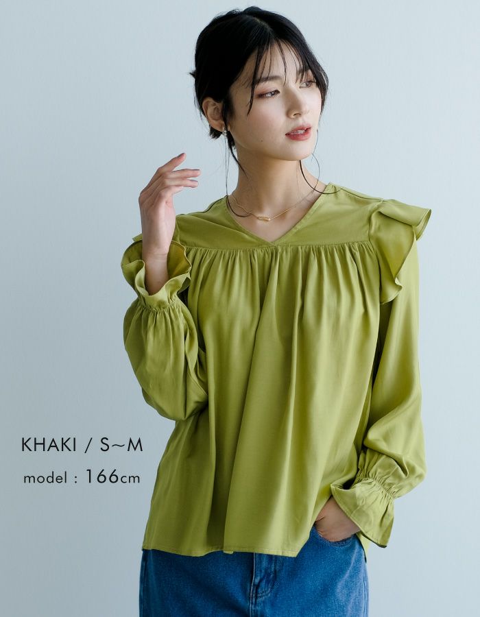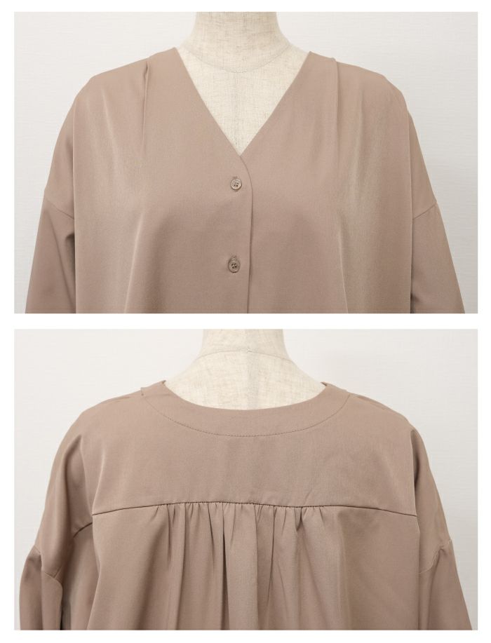 【最終値下げ価格】Vネックギャザーブラウス レディース S M L 春 秋 長袖 | アクアガレージ aquagarage