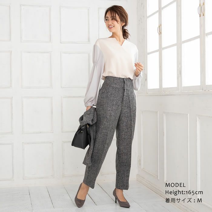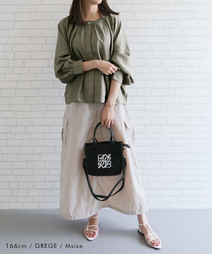 【最終値下げ価格】【セットアップ可】ツイル2wayキーネックパフスリーブトップス レディース 春 夏 秋 M | アクアガレージ aquagarage