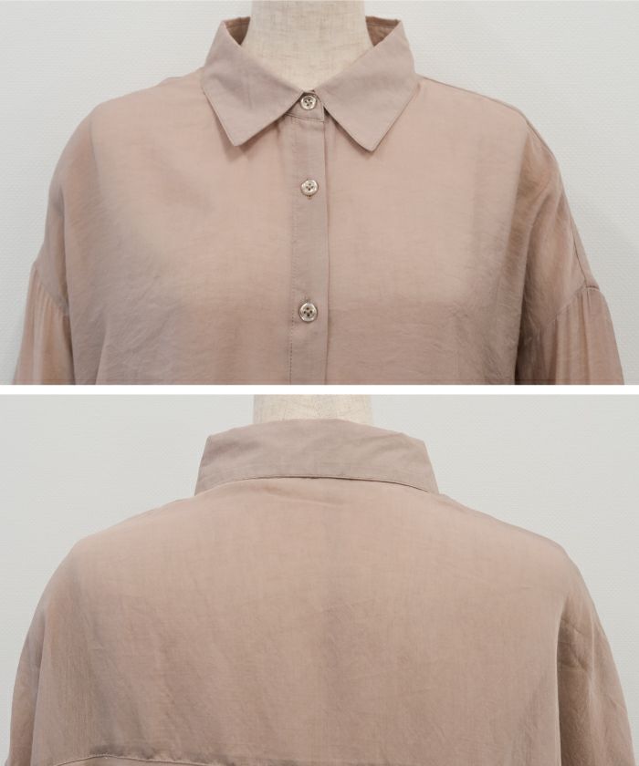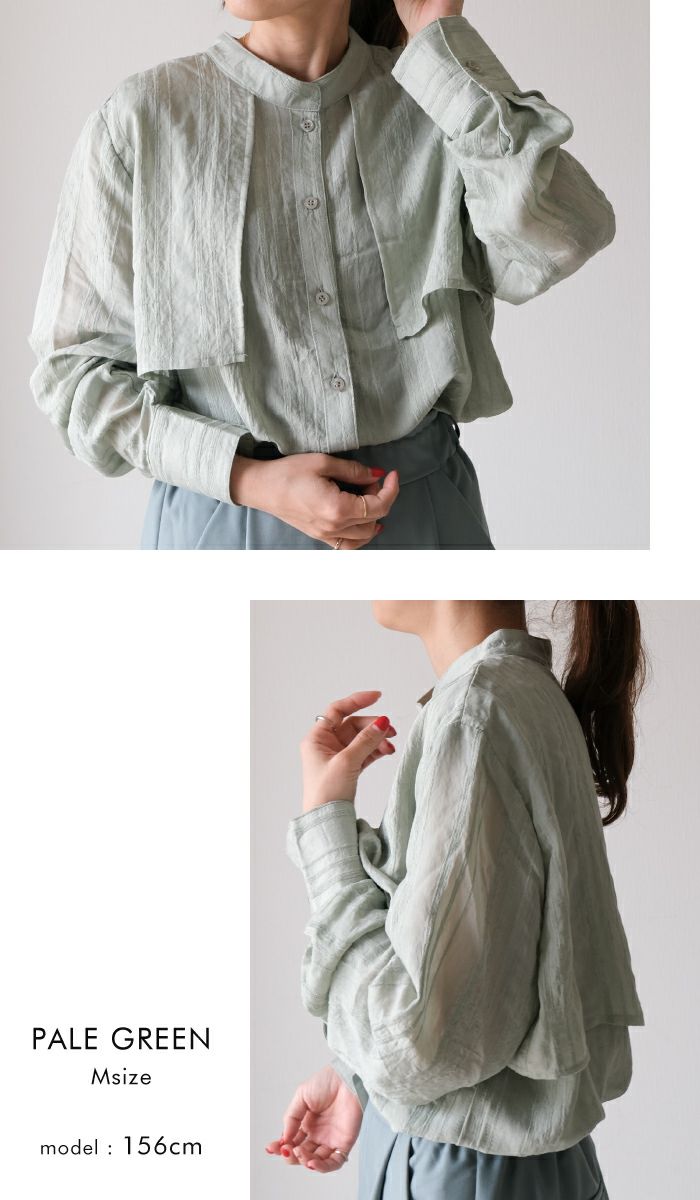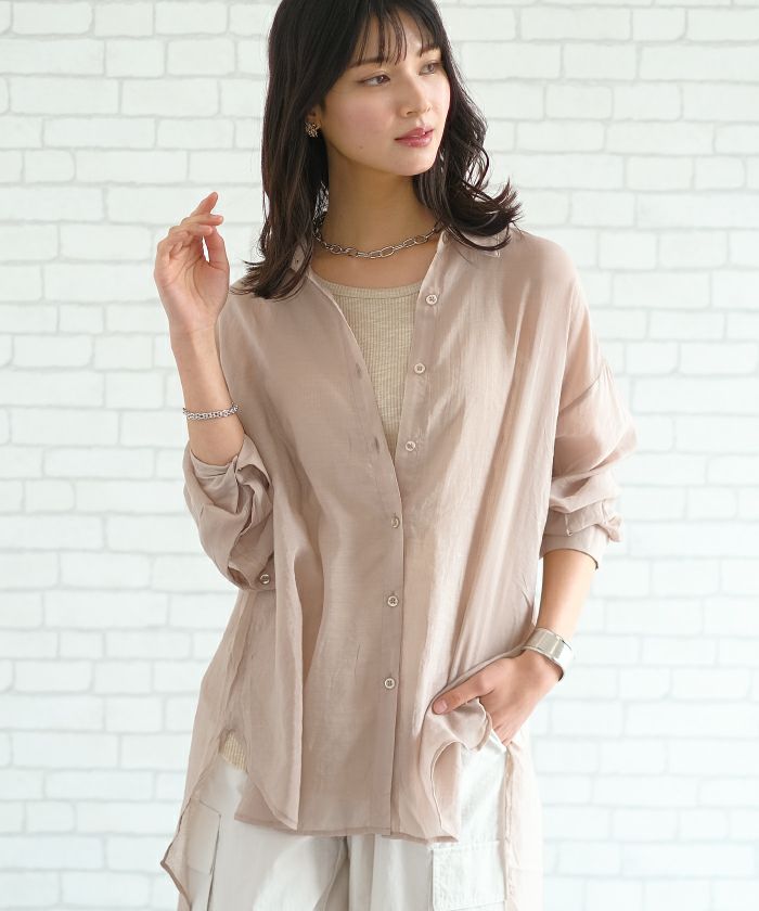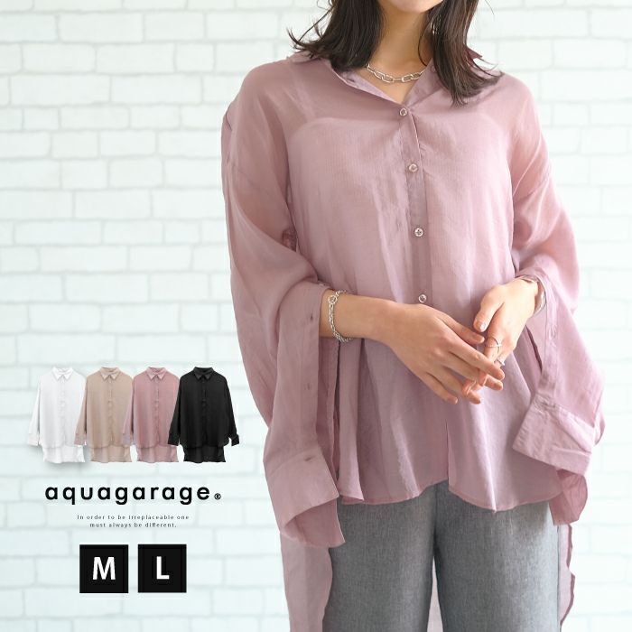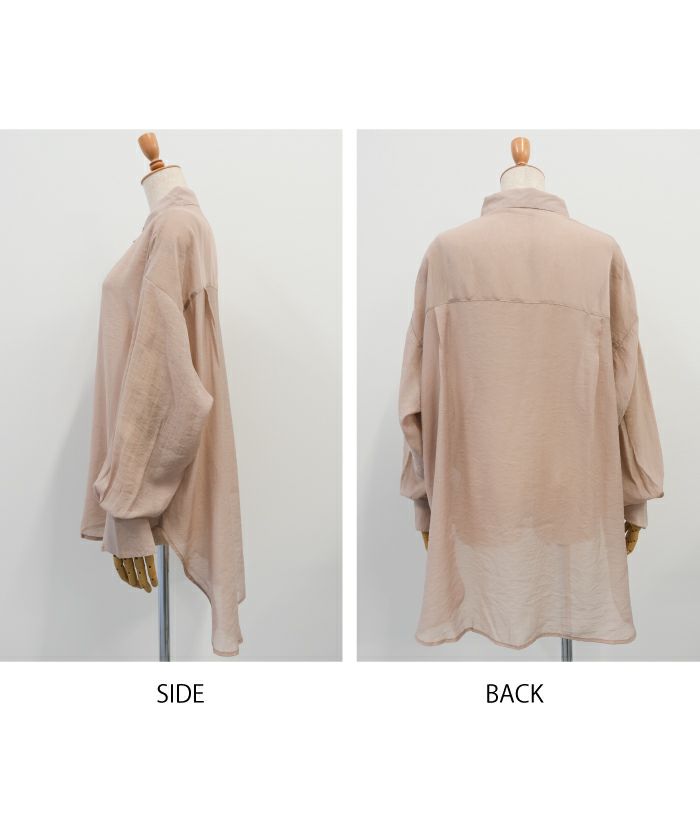 【999円祭り】スタンドカラーシアー素材ブラウス レディース 春 夏 秋 長袖 M L | アクアガレージ aquagarage