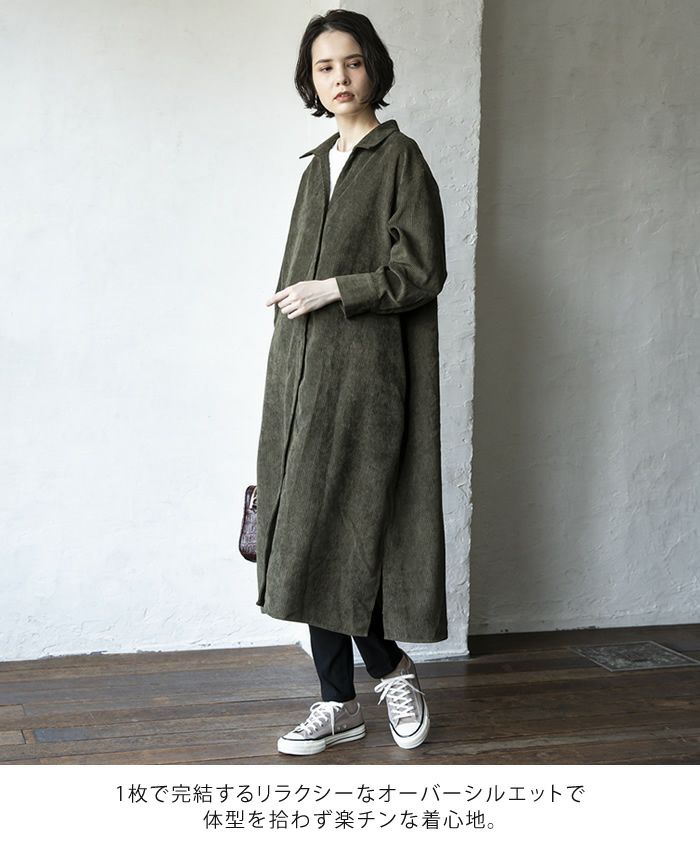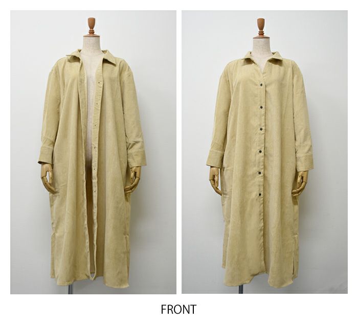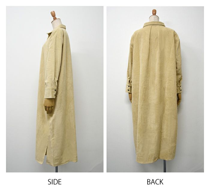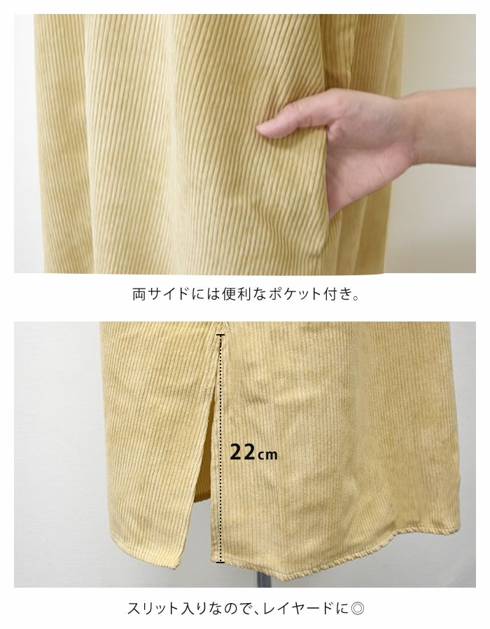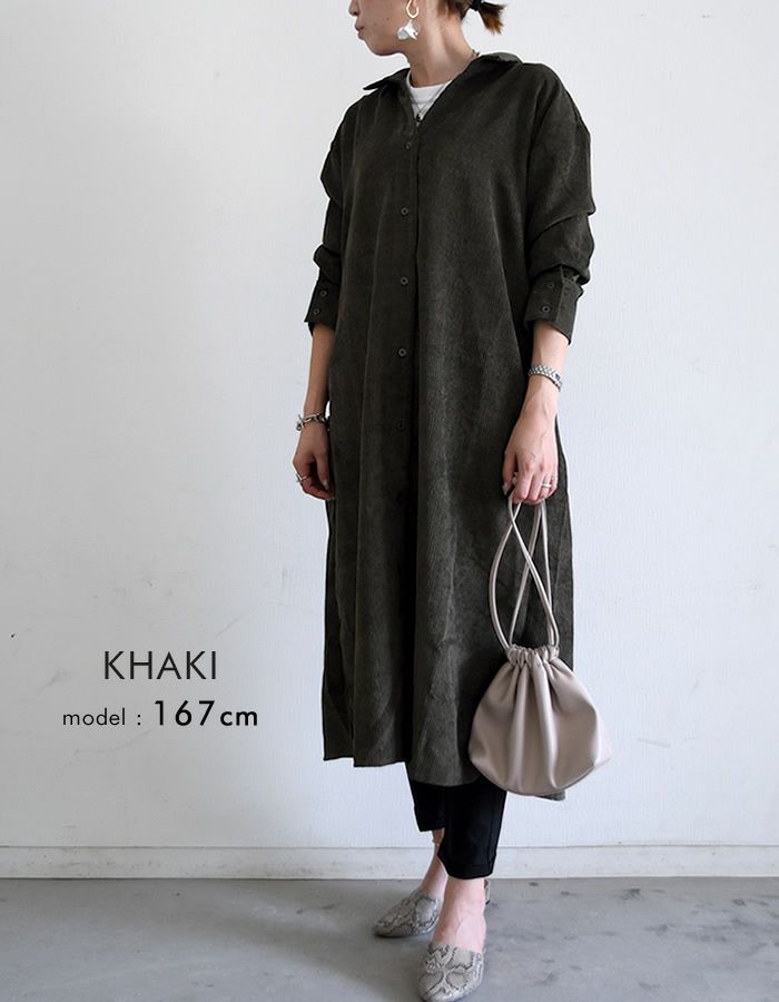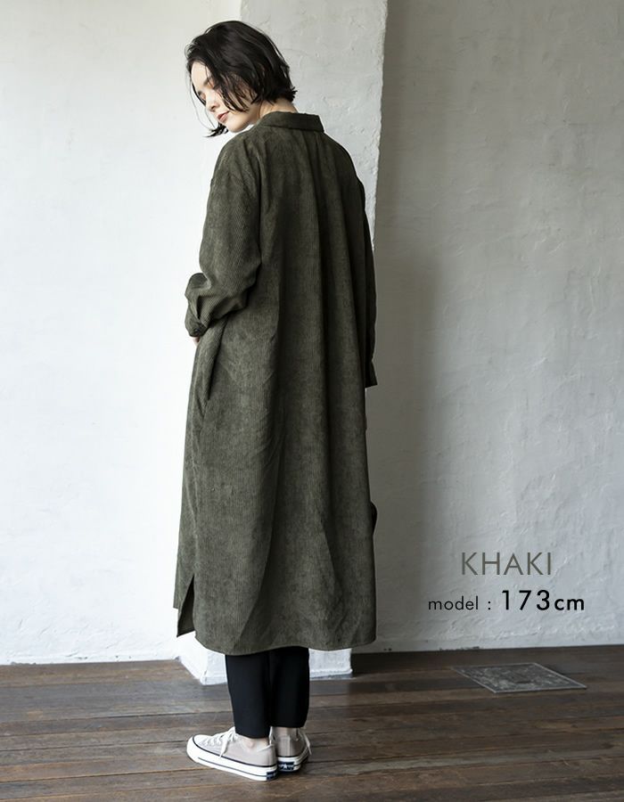 【最終値下げ価格】コーデュロイシャツワンピース レディース 春 秋 冬 長袖 ロングシャツ | アクアガレージ aquagarage