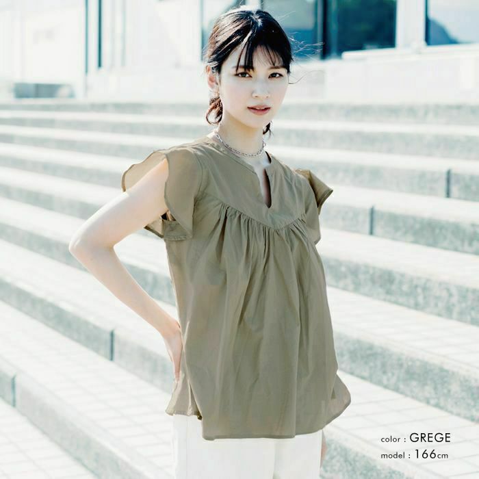 【999円祭り】ラッフルスリーブコットンブラウス レディース 春 夏 半袖 M L | アクアガレージ aquagarage