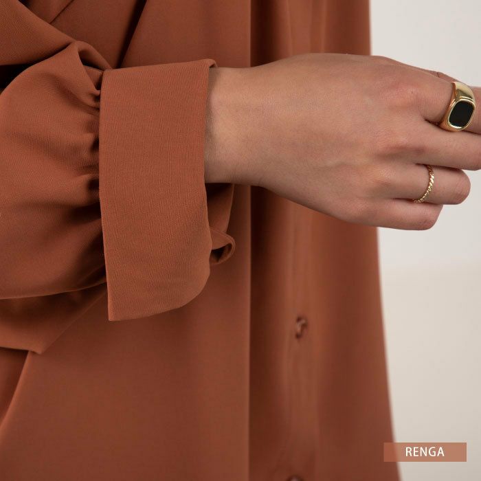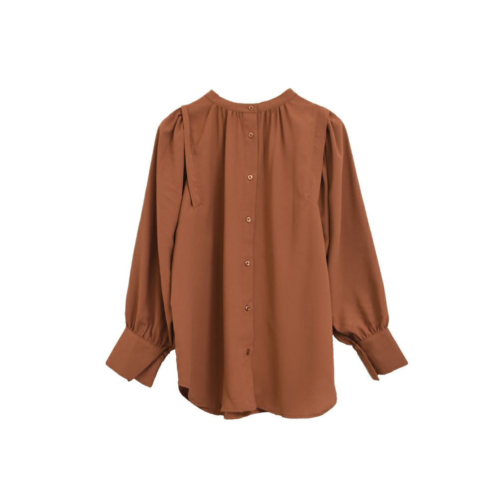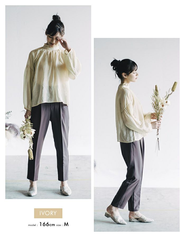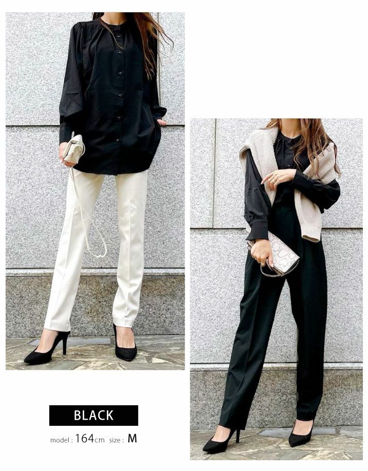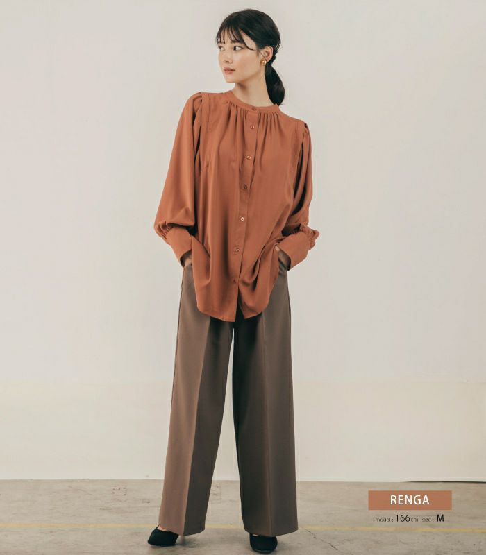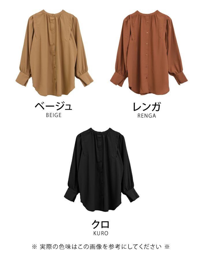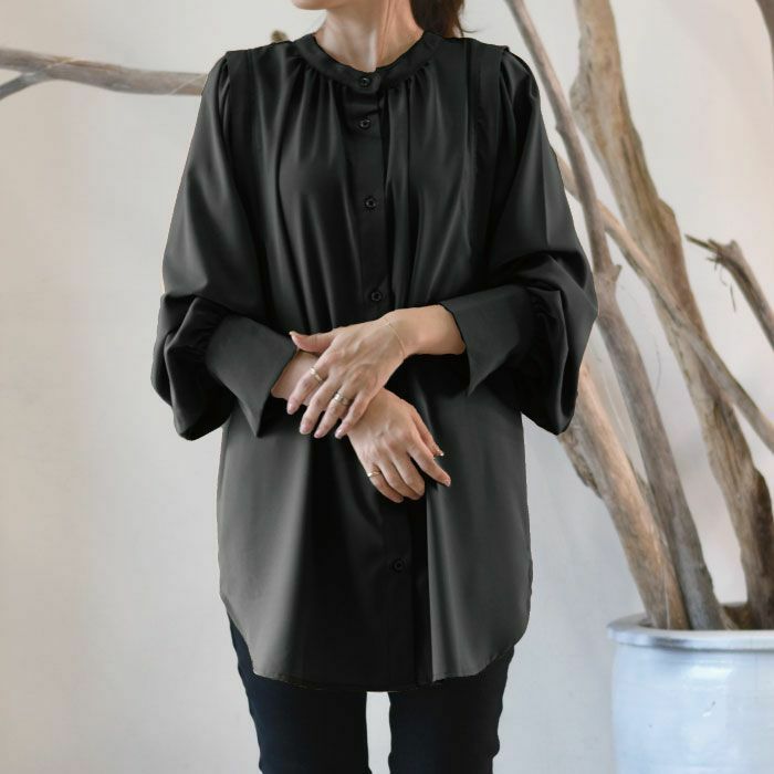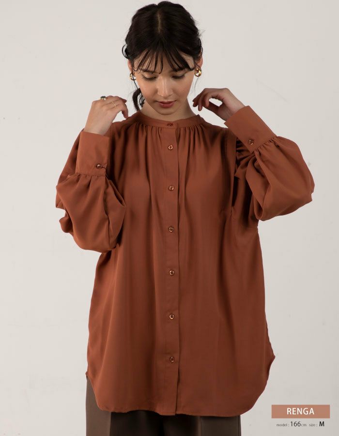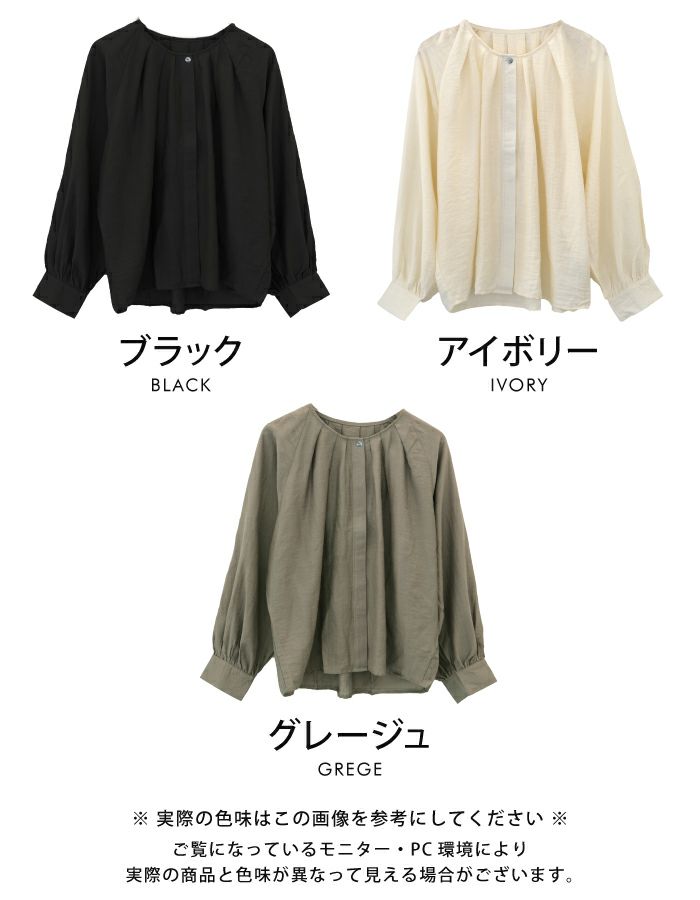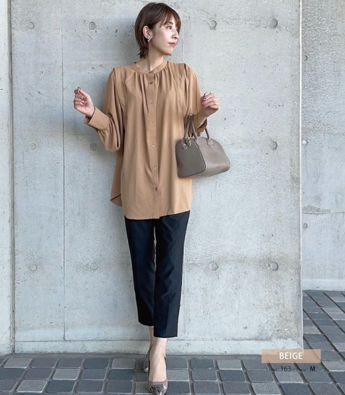 【最終値下げ価格】バンドカラーギャザーブラウス レディース 春 秋 M L 長袖 | アクアガレージ aquagarage