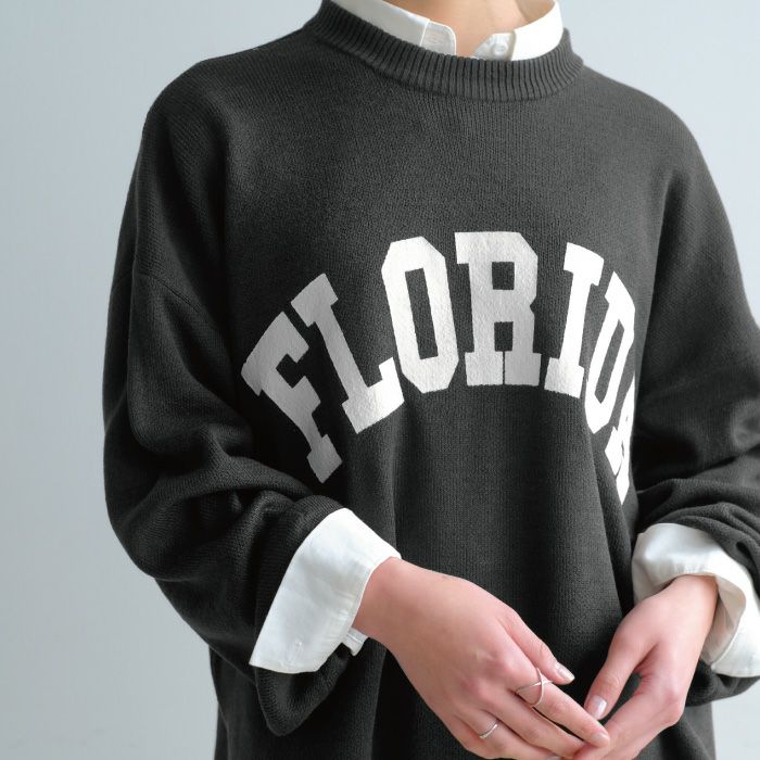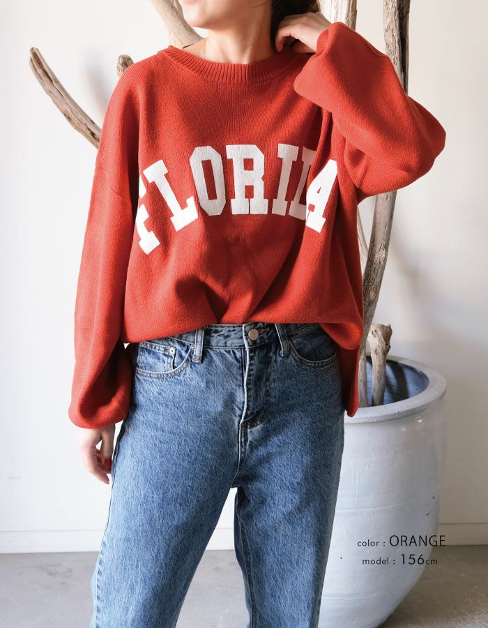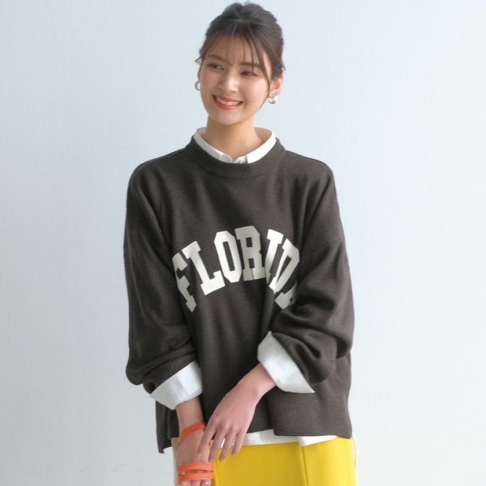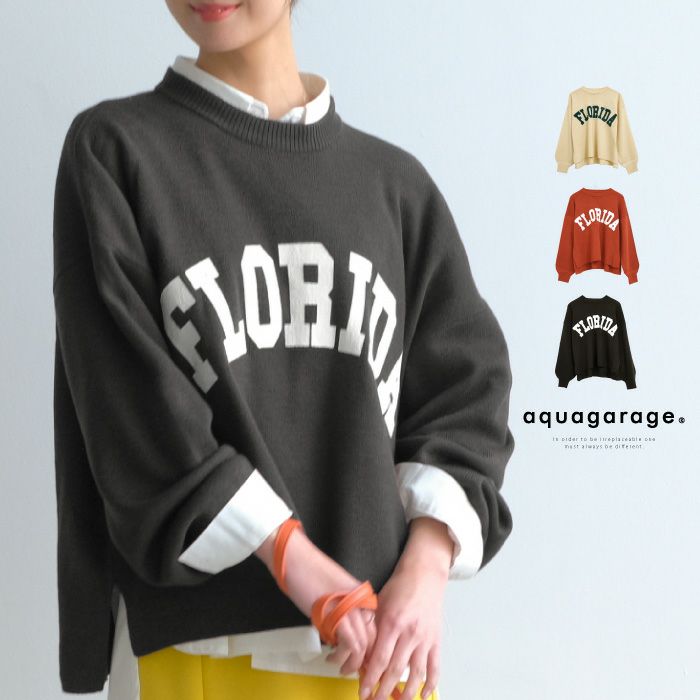 【最終値下げ価格】ロゴプリントニットトップス レディース 春 秋 長袖 大きいサイズ | アクアガレージ aquagarage
