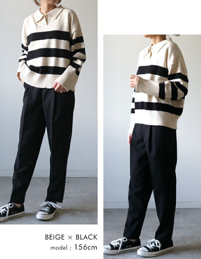 【最終値下げ価格】襟付きボーダーニットトップス レディース 秋 冬 | アクアガレージ aquagarage