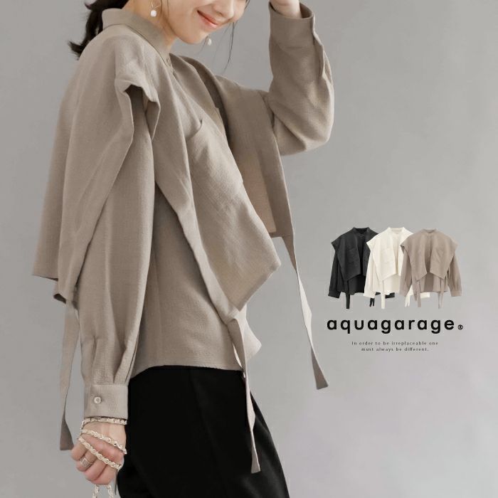 【最終値下げ価格】サイドリボンケープシャツ レディース 春 秋 長袖 前後2way | アクアガレージ aquagarage