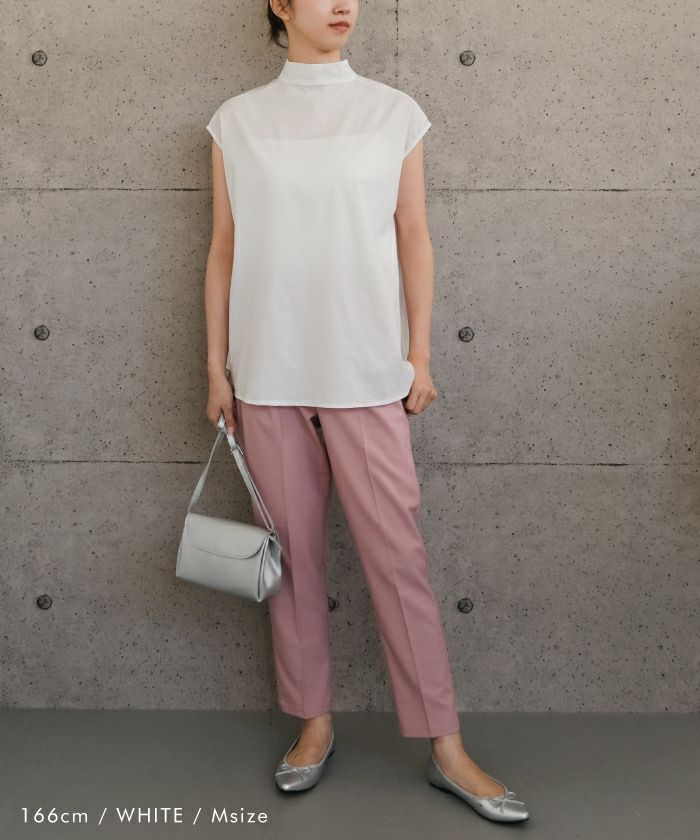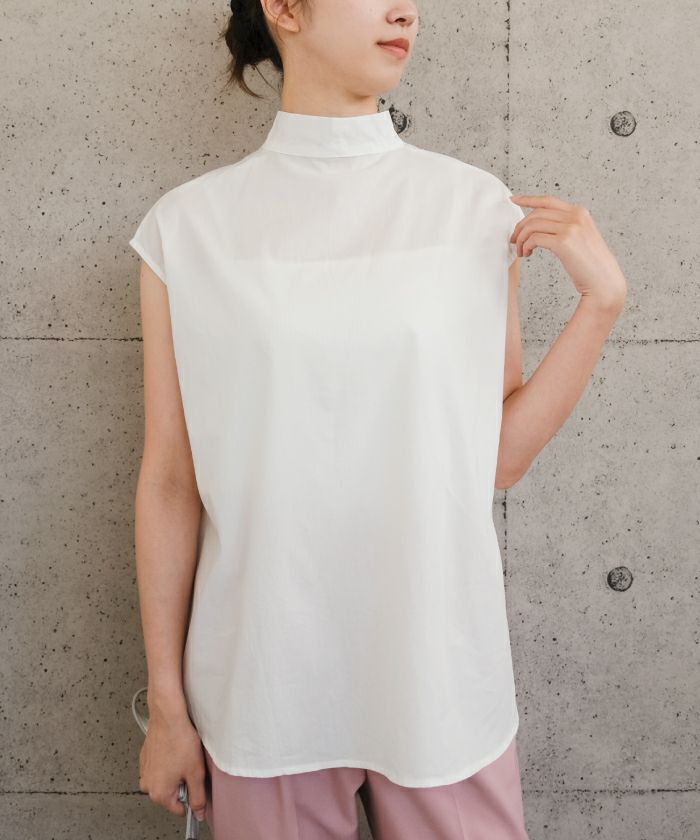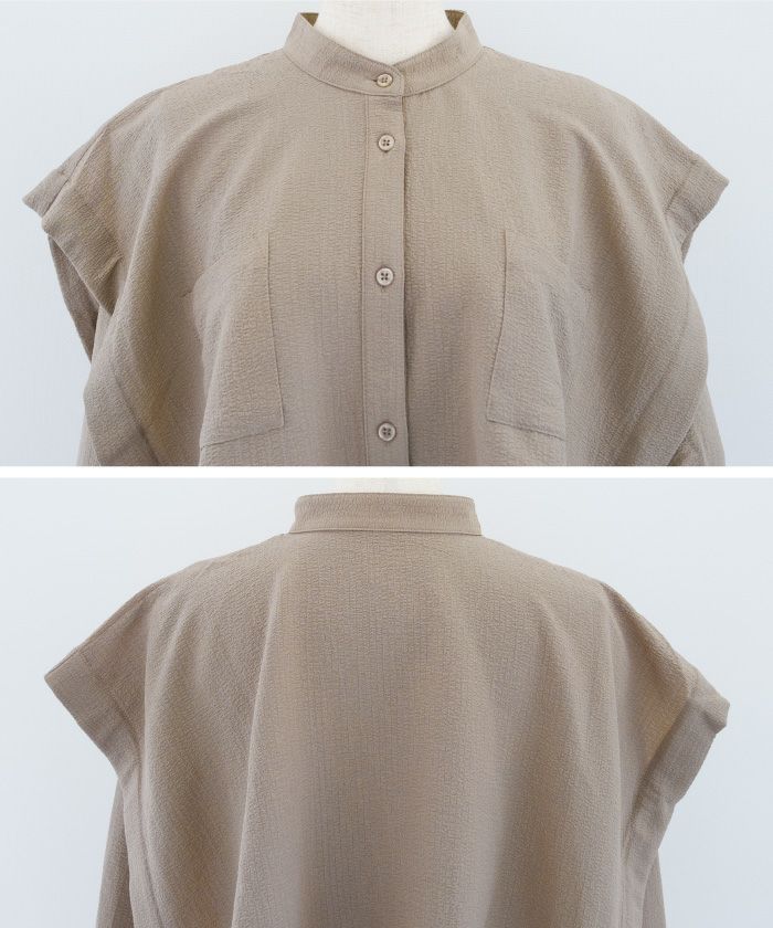 【999円祭り】スタンドカラーブラウス レディース 春 夏 半袖 M L バックボタンシャツ | アクアガレージ aquagarage
