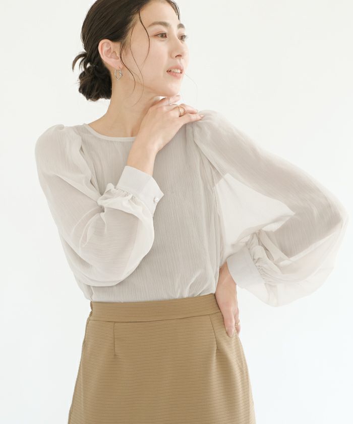 【999円祭り】バルーンスリーブシアーブラウス 春 夏 秋 冬 M L | アクアガレージ aquagarage