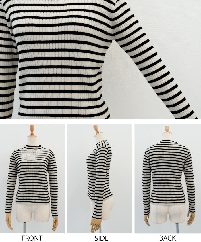 【最終値下げ価格】ボーダー柄ハイネックカットソー レディース 春 秋 冬 | アクアガレージ aquagarage