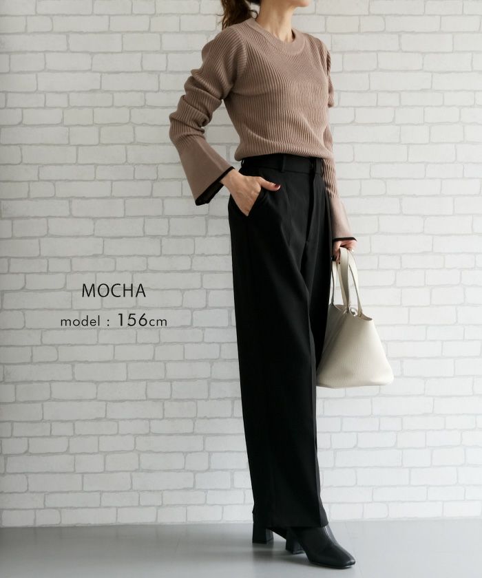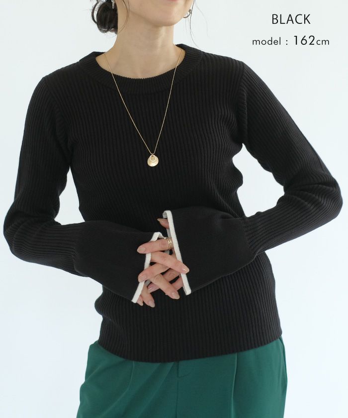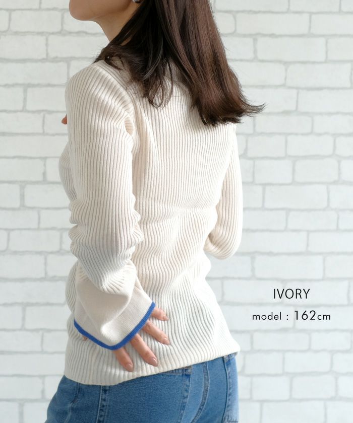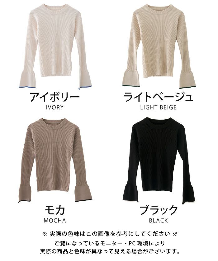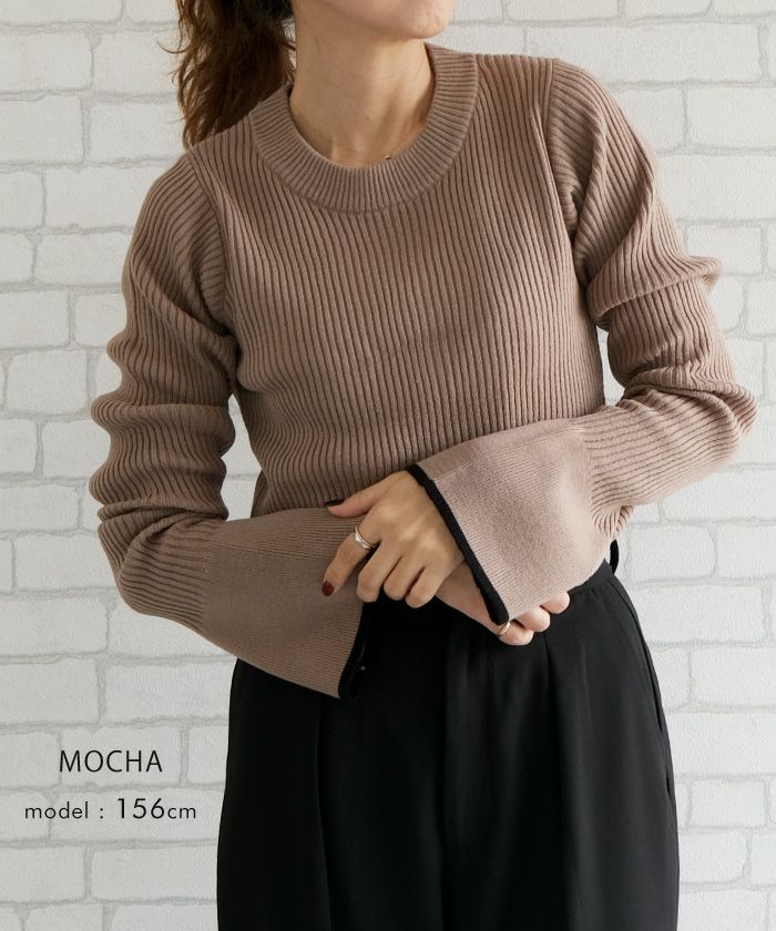 【最終値下げ価格】袖フレア配色リブニット レディース 春 秋 冬 | アクアガレージ aquagarage