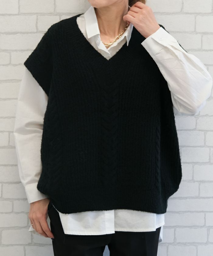 【最終値下げ価格】ケーブストル編みニットベスト レディース | アクアガレージ aquagarage