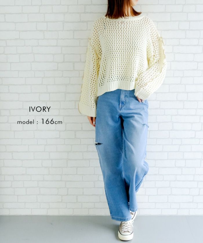 【最終値下げ価格】透かし編みゆるニットトップス レディース 春 秋 | アクアガレージ aquagarage