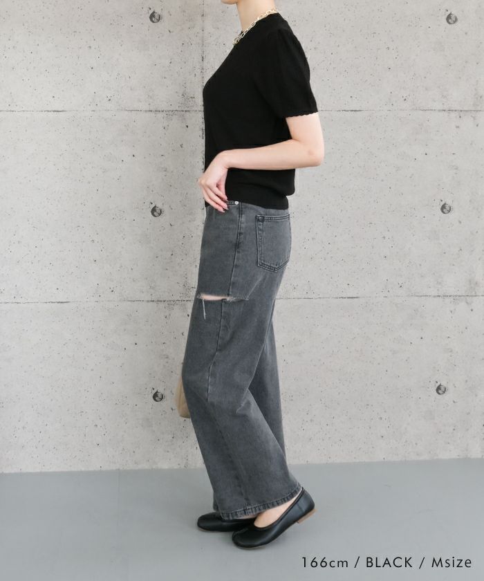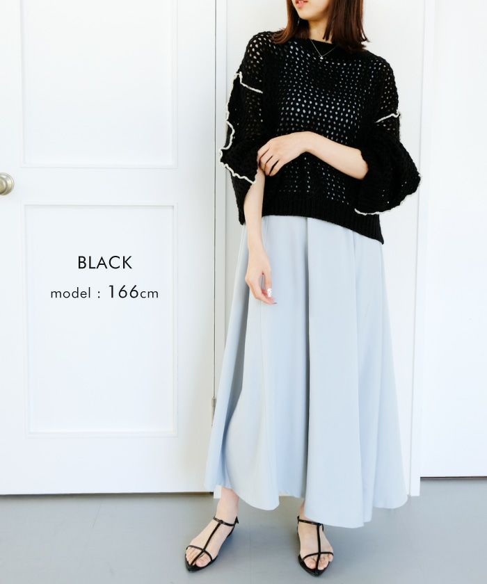 【最終値下げ価格】袖フリルサマーニットトップス レディース 春 秋 冬 長袖 | アクアガレージ aquagarage