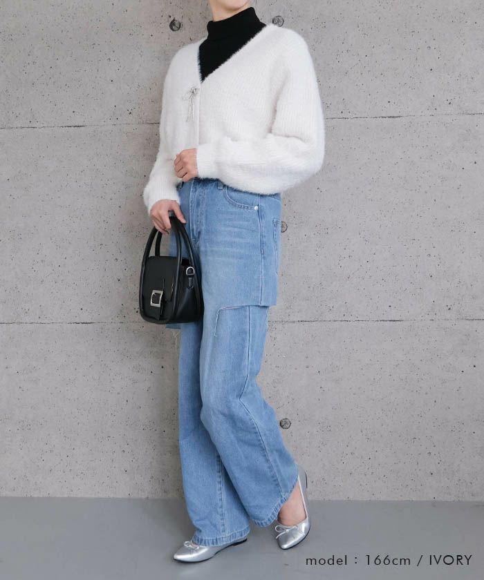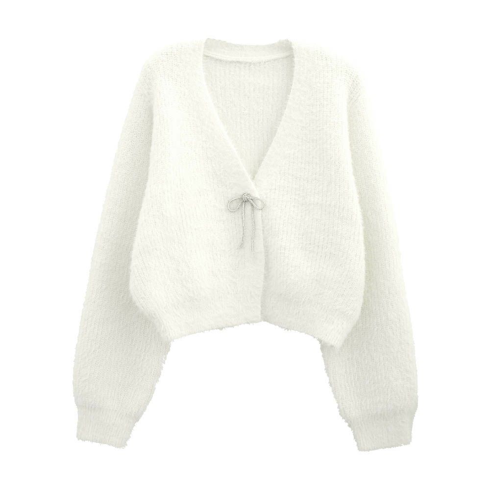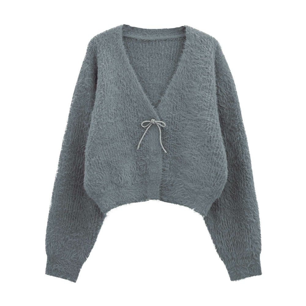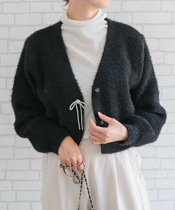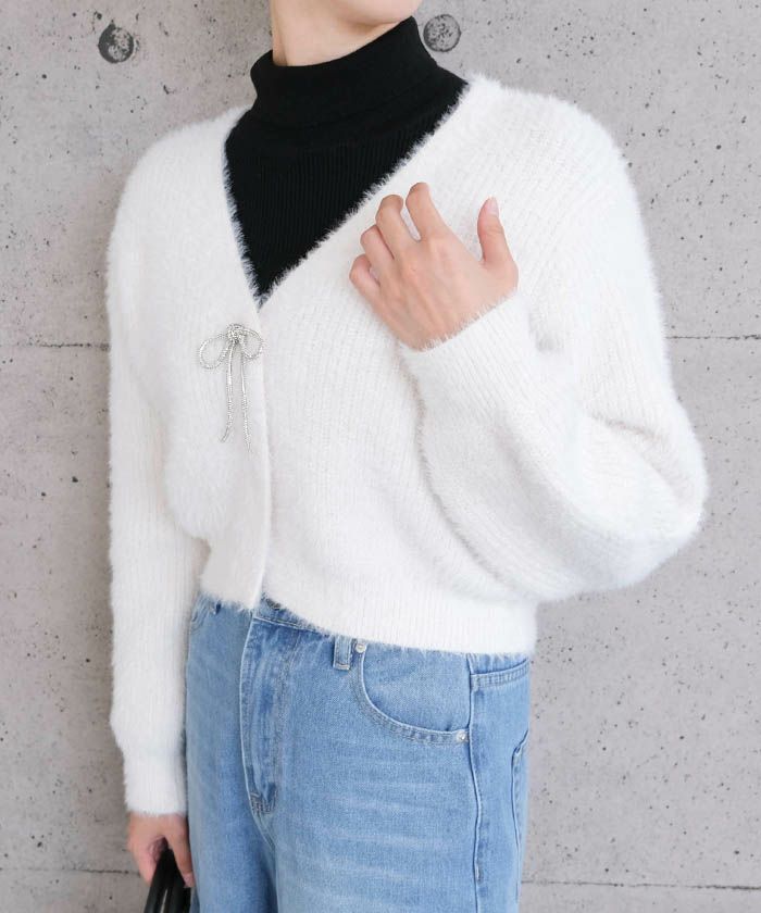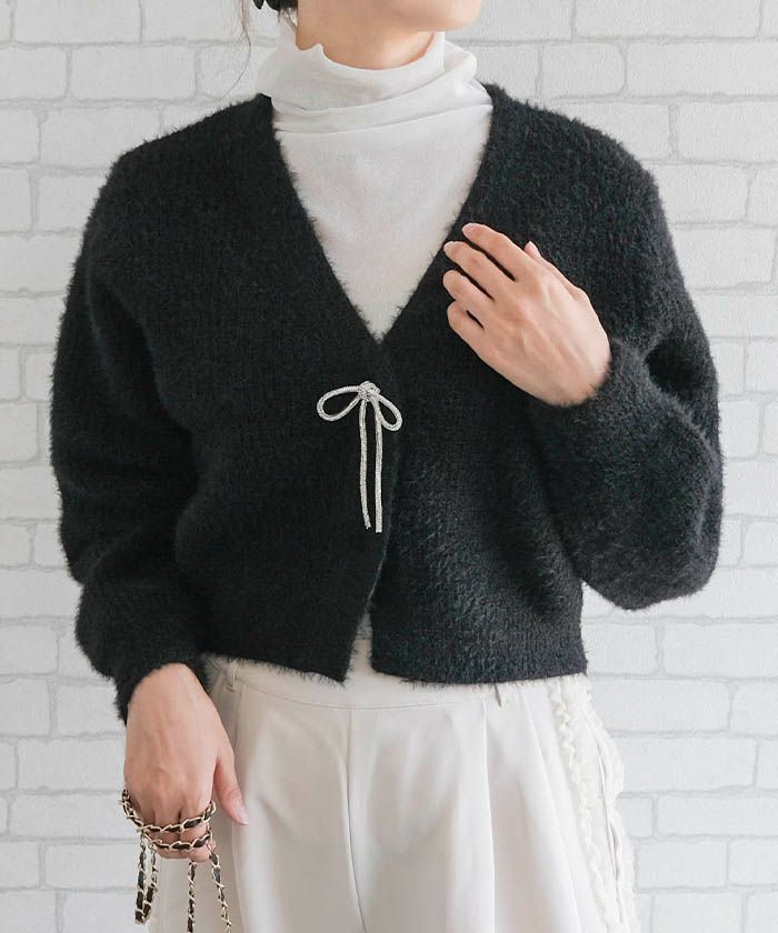 【最終値下げ価格】ミンクフェザービジューリボンカーディガン 春 秋 冬 | アクアガレージ aquagarage