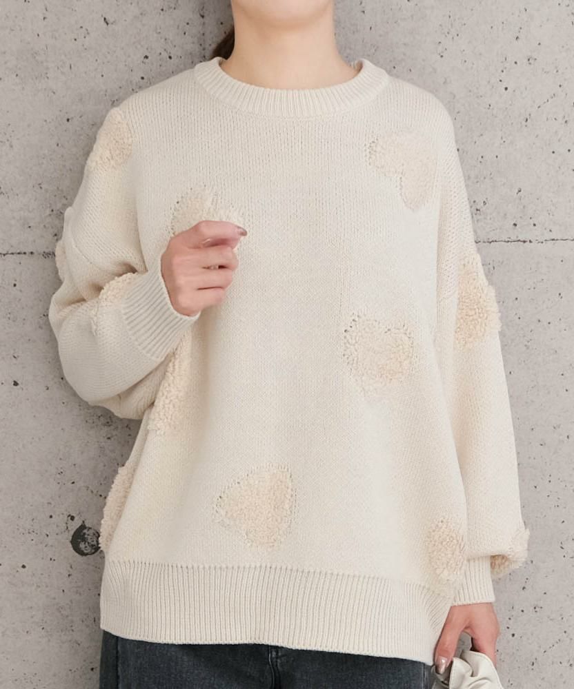 【最終値下げ価格】ニードルパンチハート柄ニットトップス 秋 冬 | アクアガレージ aquagarage