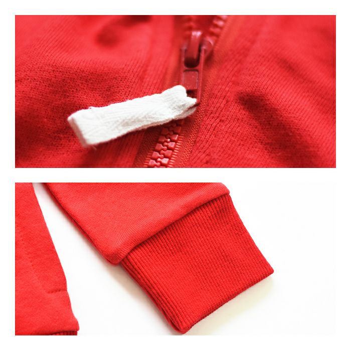 着丈:45cm 裄丈:62cm 身幅:40cm 袖口:10cm 裾幅:33cm アームホール:17cm フード高さ:22cm フード幅:28cm