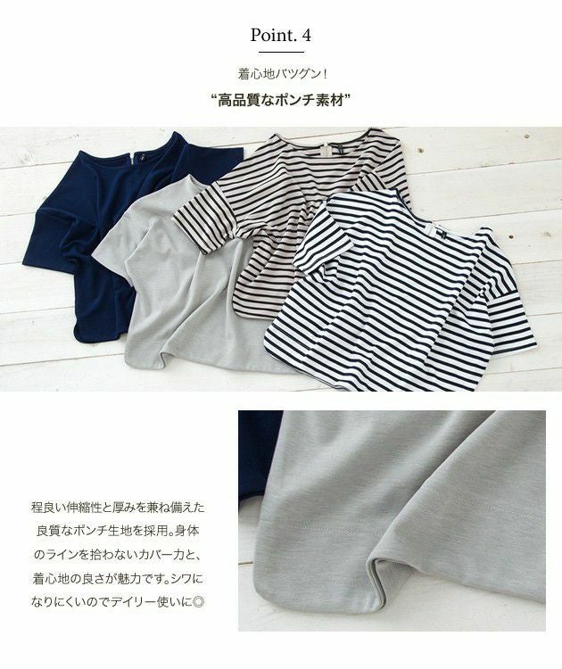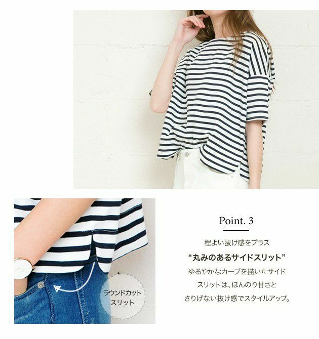 袖のボーダーが切り替えられてるのが可愛いです!身幅が結構たっぷりしてるので普通に着るだけだと太ってみえ、、、後ろに引っ張って着ると綺麗に着れました!クーポンでお安く購入できたので満足です。