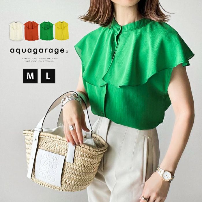 【999円祭り】フリル襟ノースリーブブラウス レディース 春 夏 M L フレンチスリーブ | アクアガレージ aquagarage