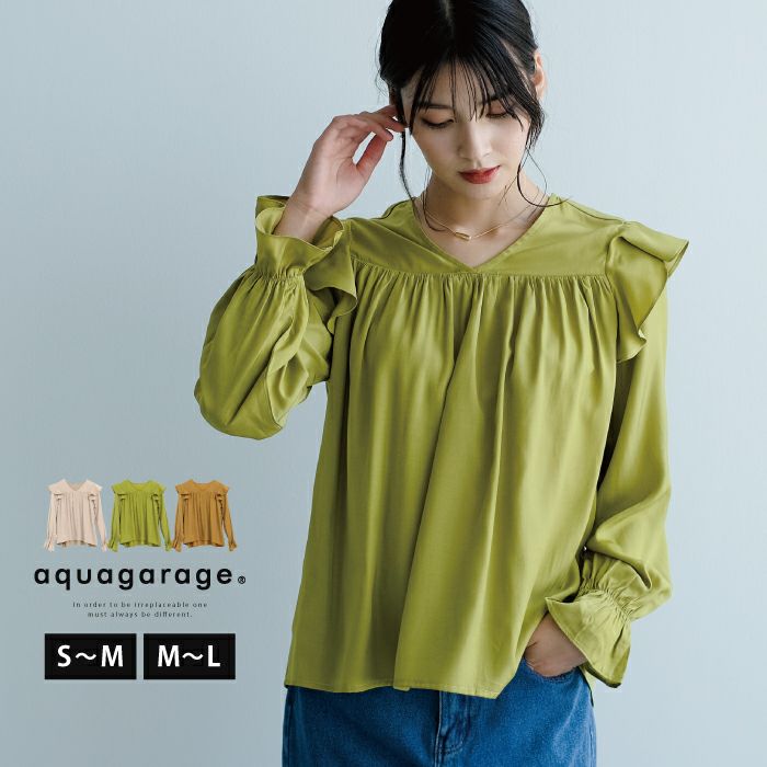 【最終値下げ価格】Vネックギャザーブラウス レディース S M L 春 秋 長袖 | アクアガレージ aquagarage