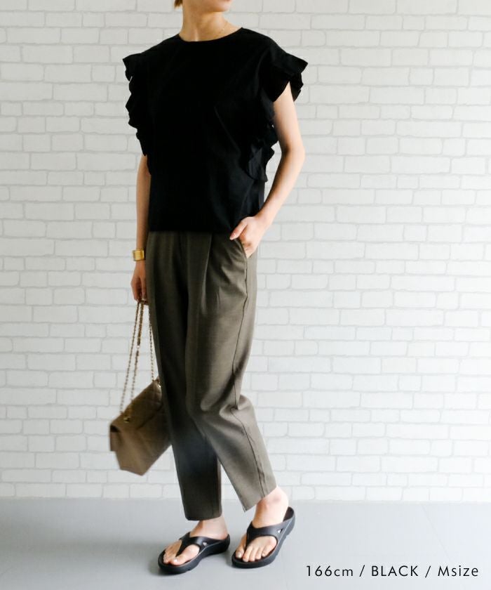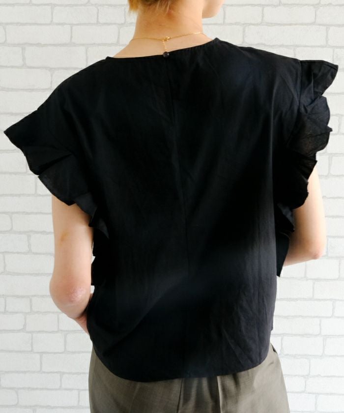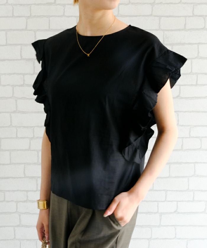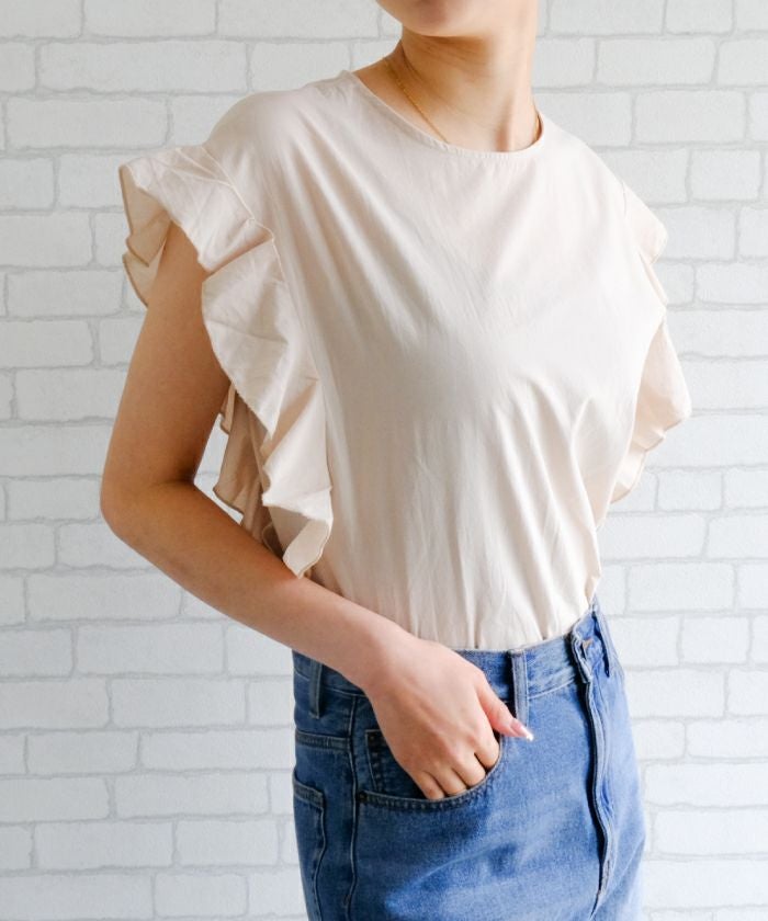 • ほんのり女っぽく、大人可愛い印象になるフレア袖ブラウス