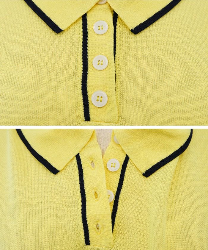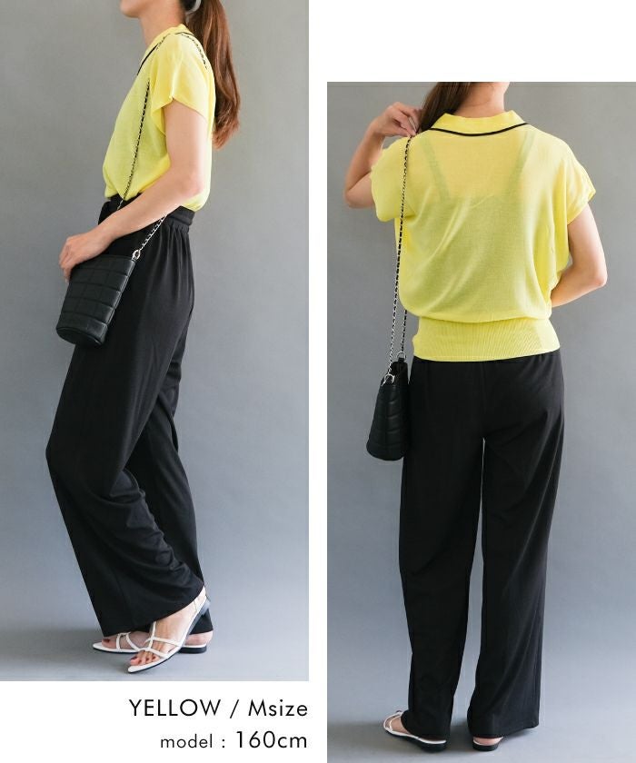 • 上品な襟付き配色ラインサマーニット。