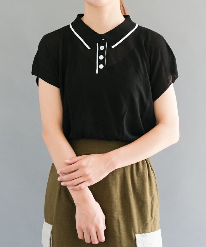 スポーティな印象のポロシャツを女性らしい雰囲気に仕上げました。