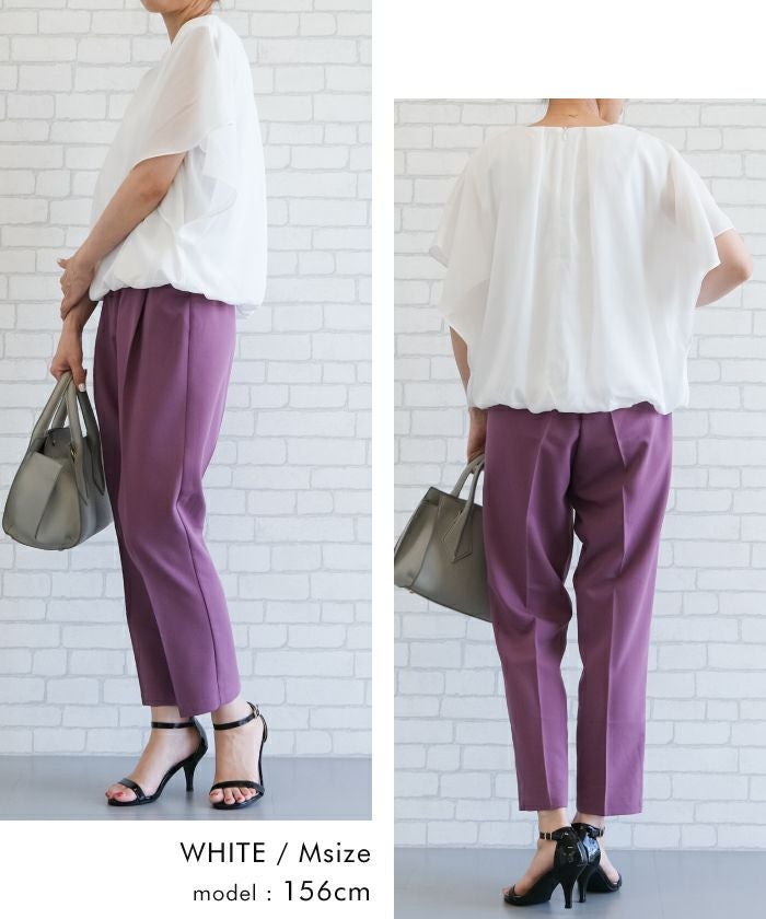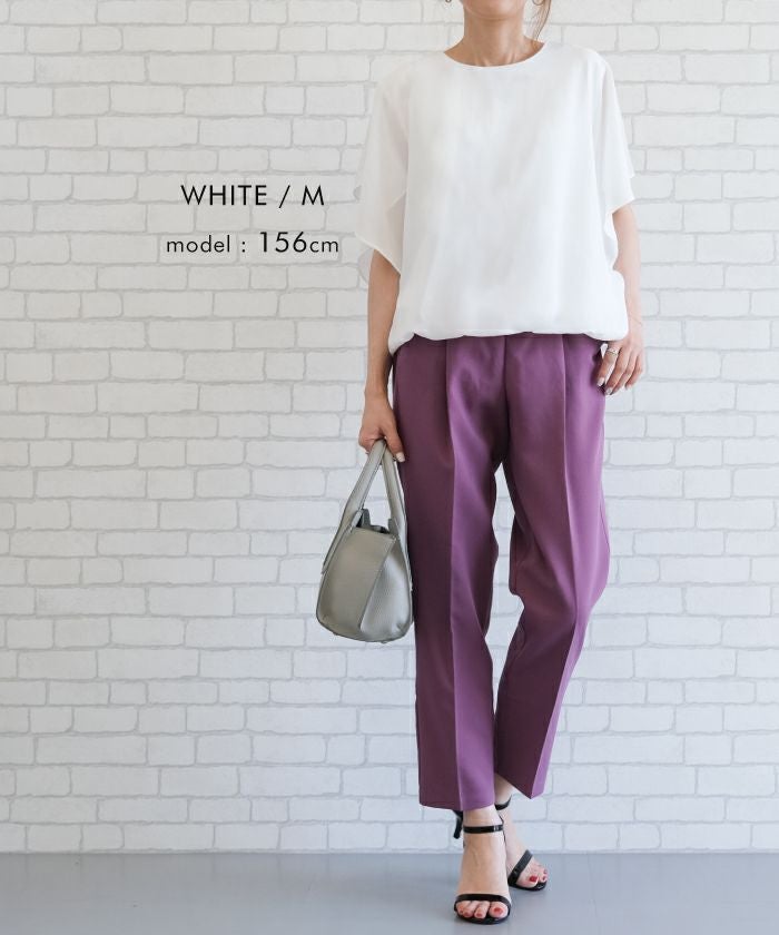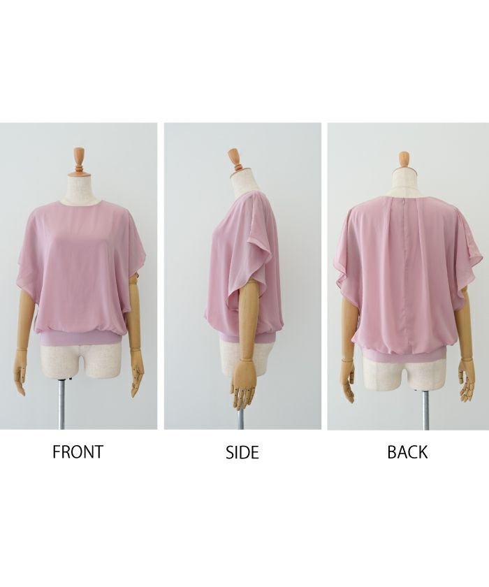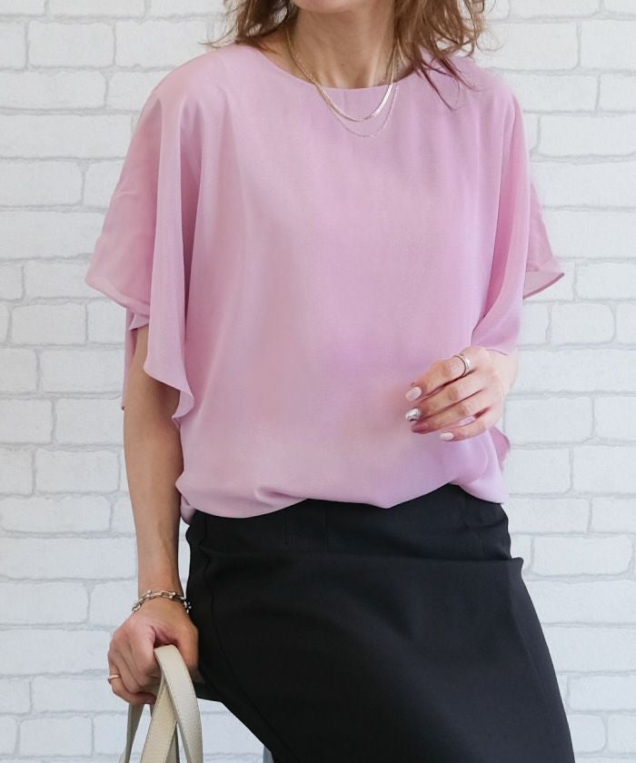 • ひらりとしたフリルで気になる二の腕をしっかりカバー!ドルマンスリーブシフォンブラウス