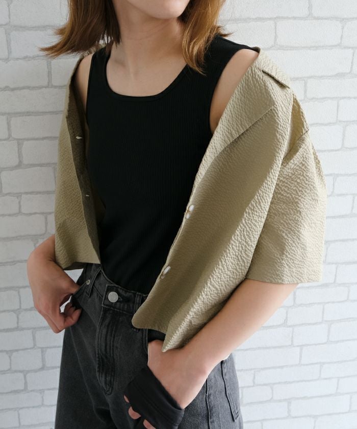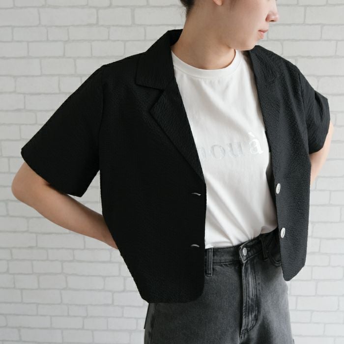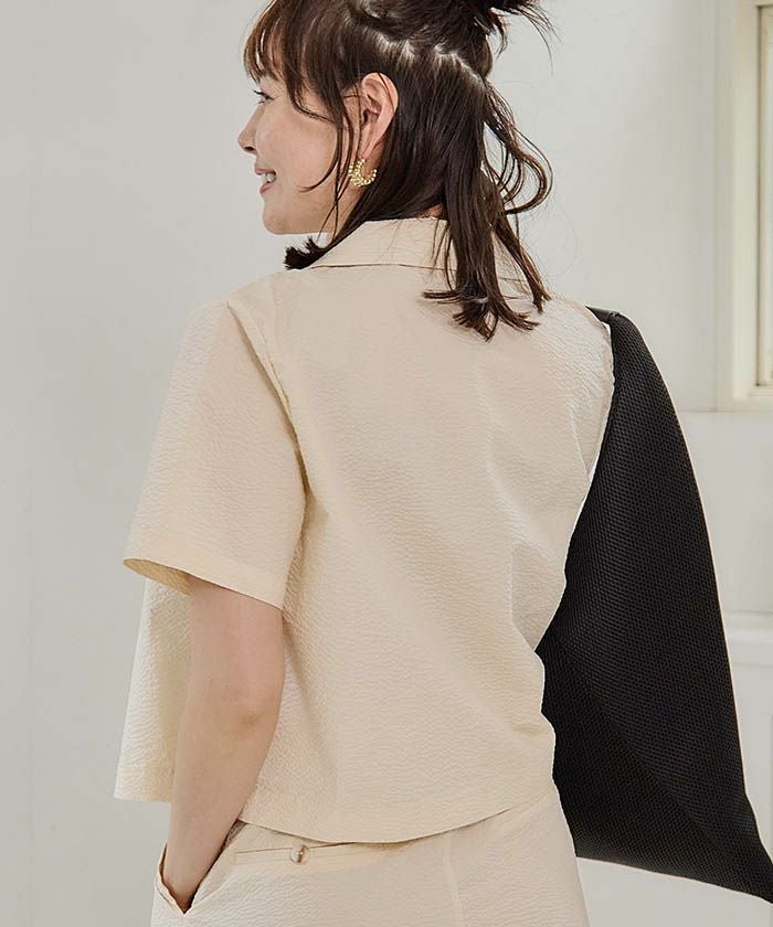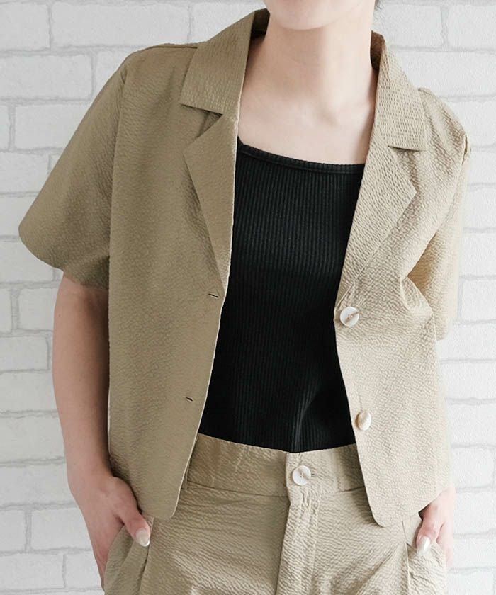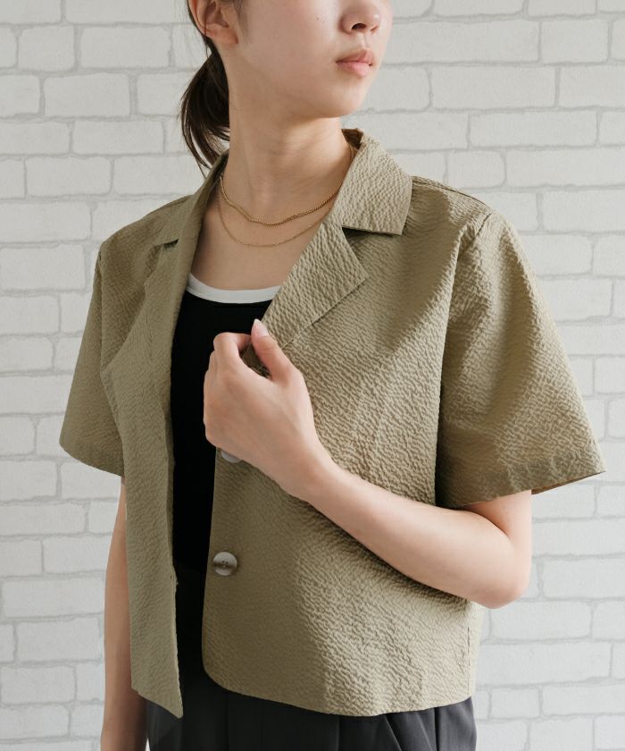 • さらっと涼しい着心地が魅力のサッカー生地ショート丈シャツジャケット
