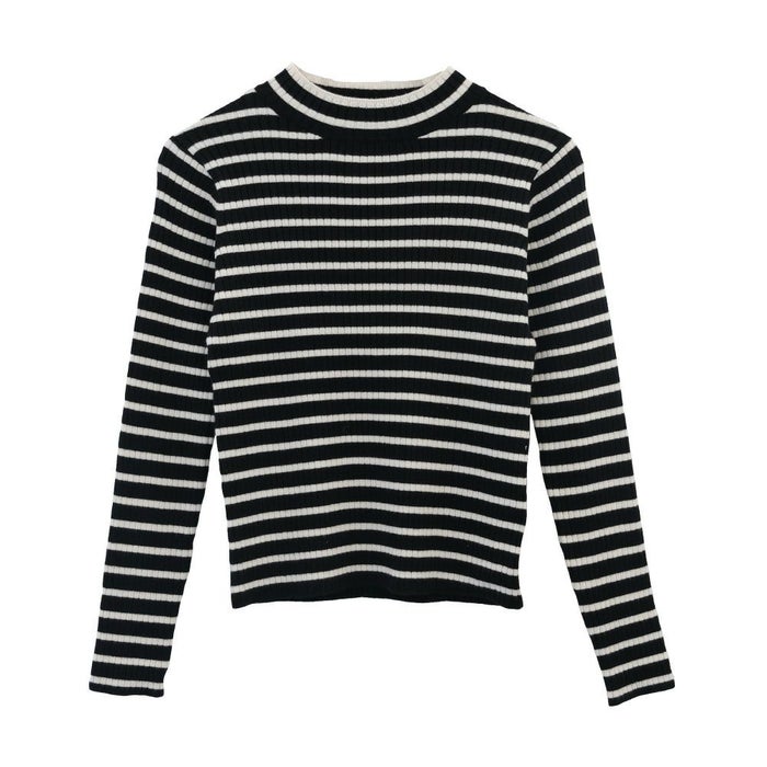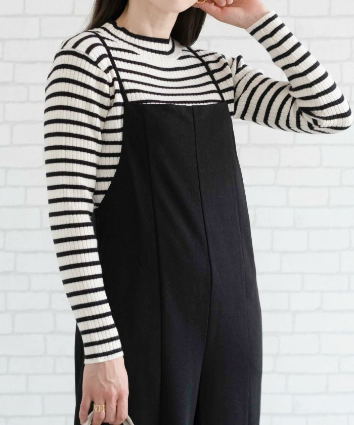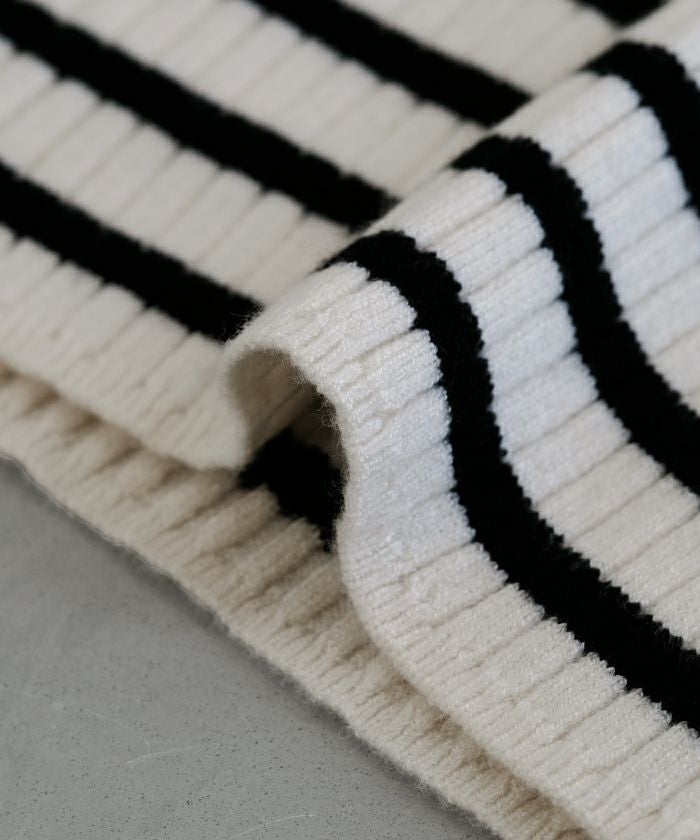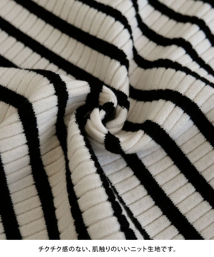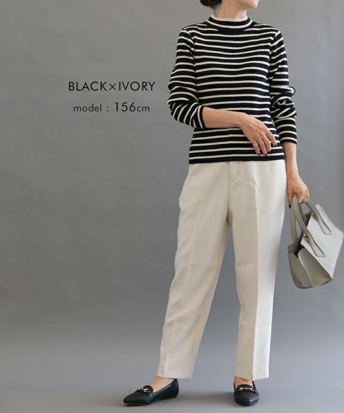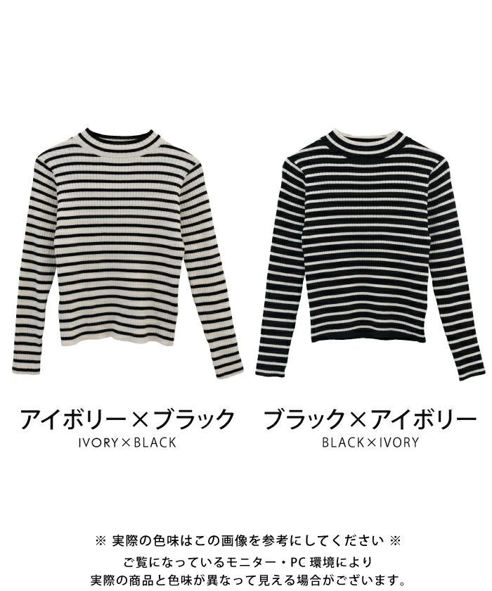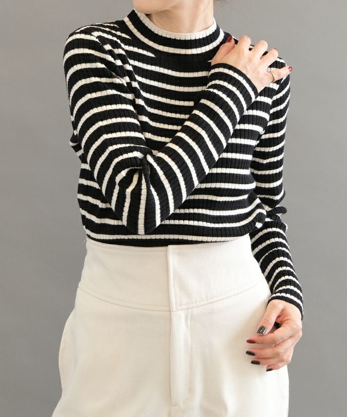 • 柔らかな生地で肌触りのいいボーダー柄ハイネックカットソー