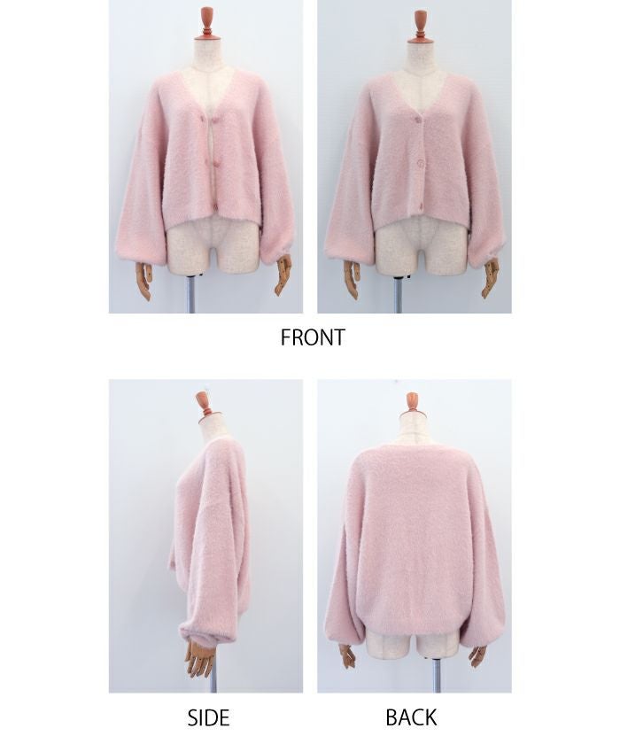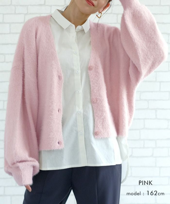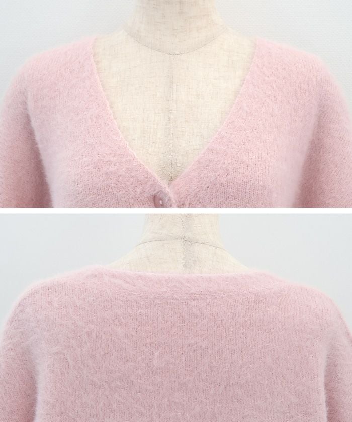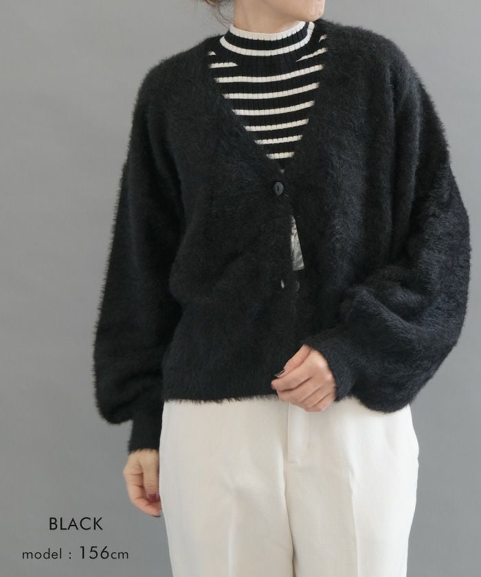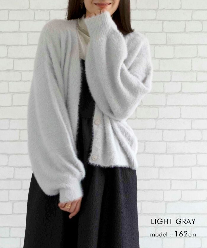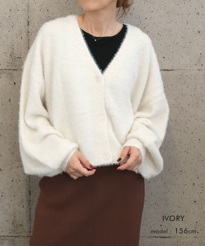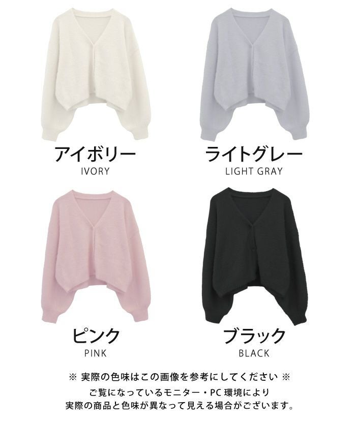 • ふんわりしたソフトなタッチのシャギーニットショート丈カーディガン