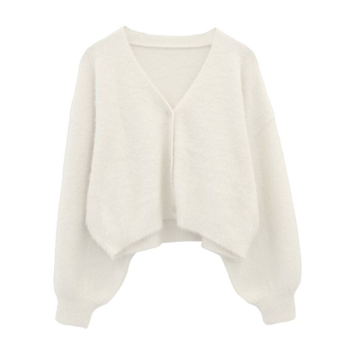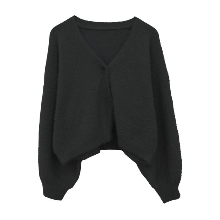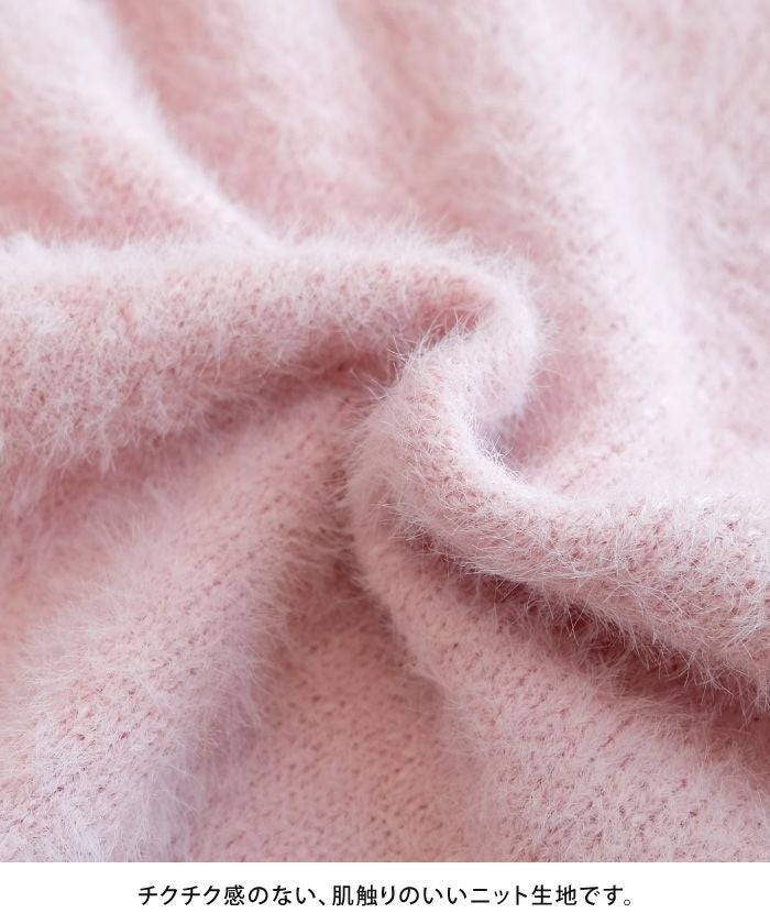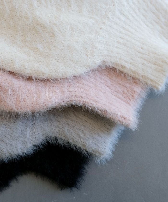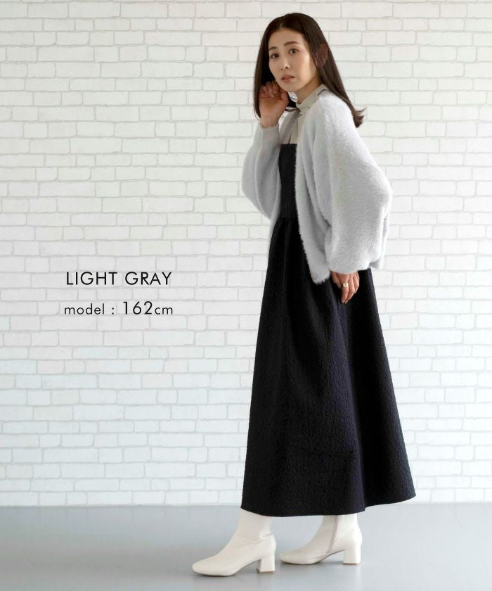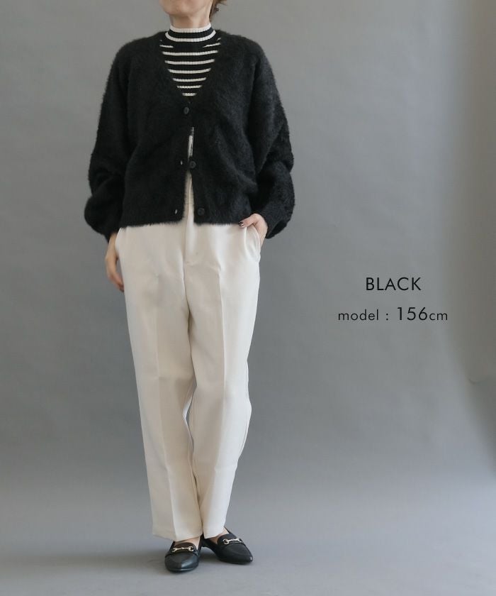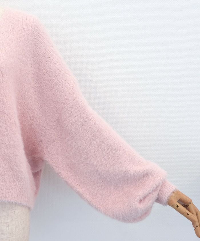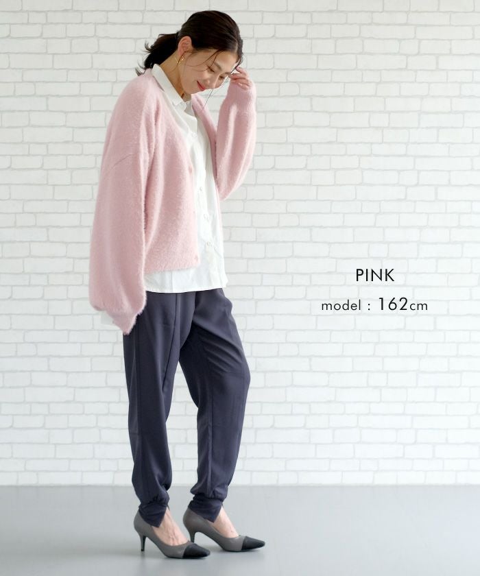 • ふんわりしたソフトなタッチのシャギーニットショート丈カーディガン