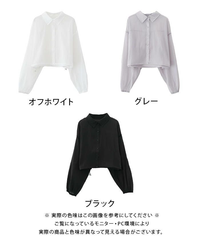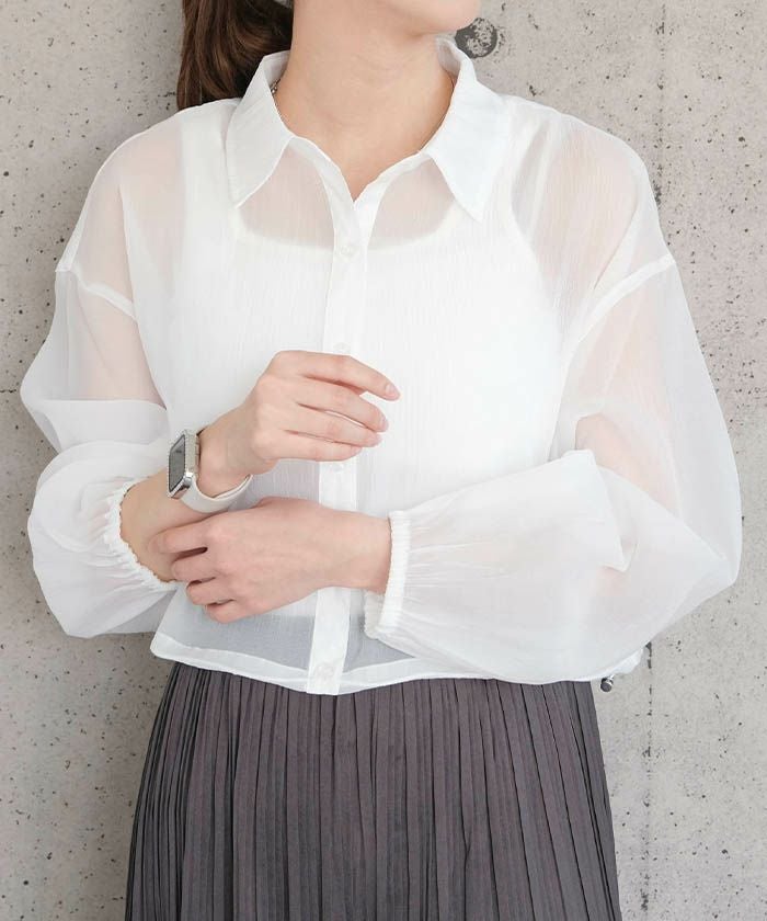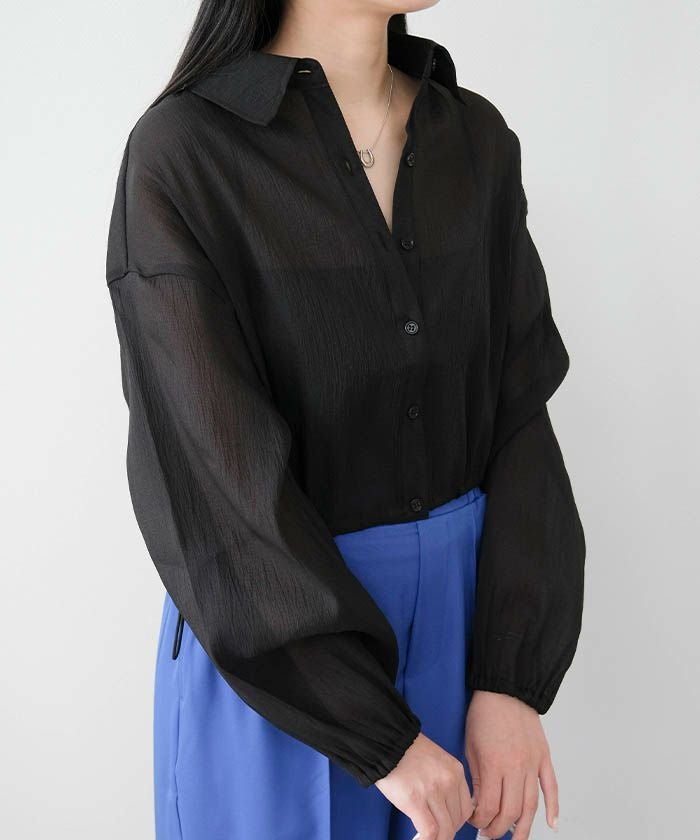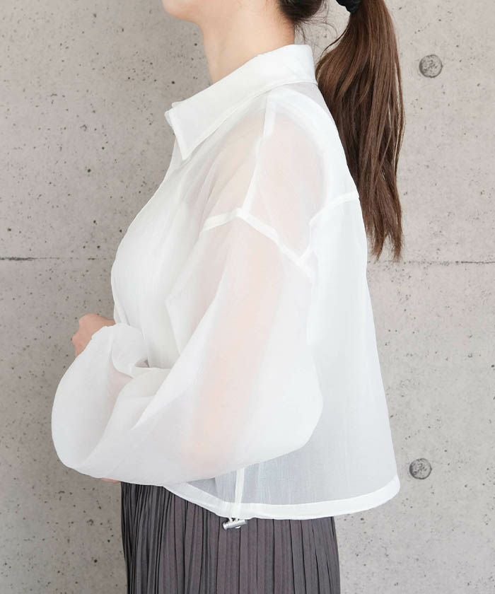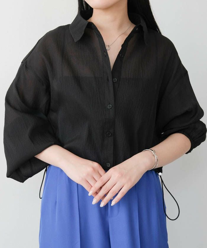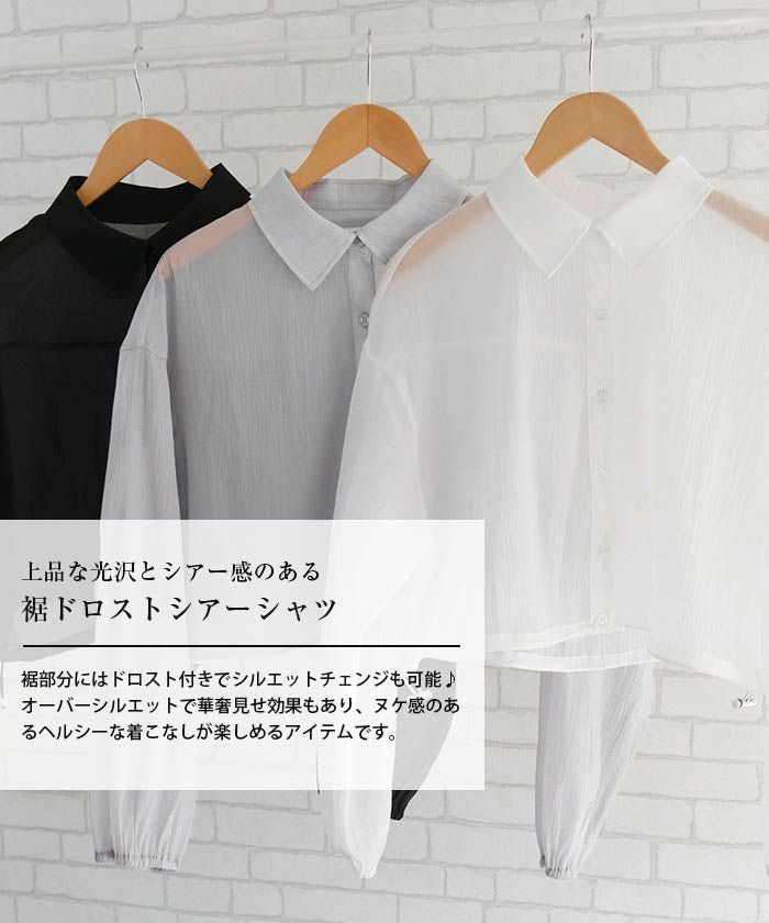 • 上品な光沢とシアー感のある裾ドロストシアーシャツ
