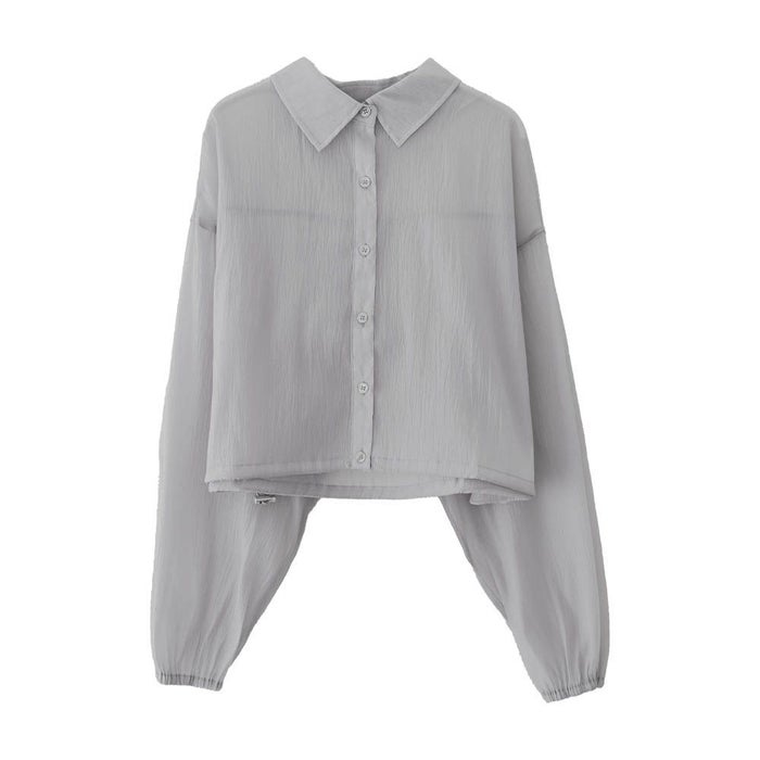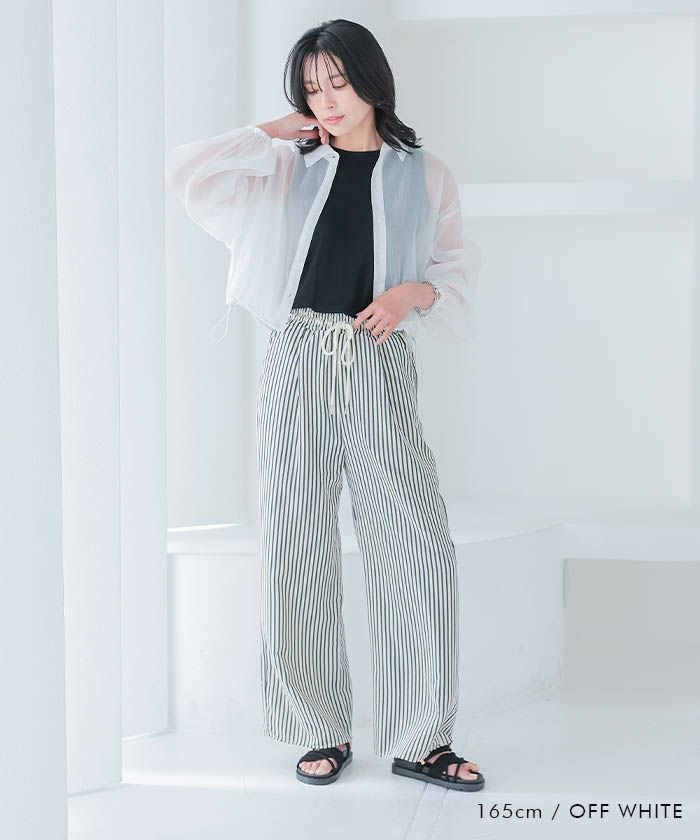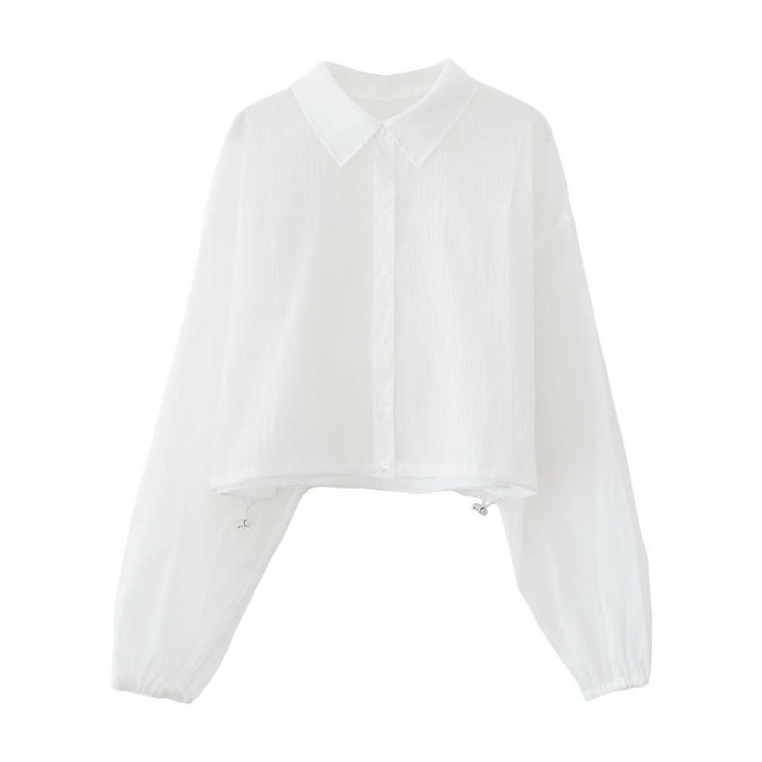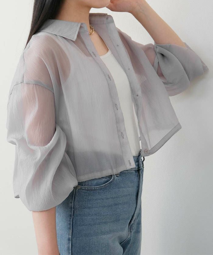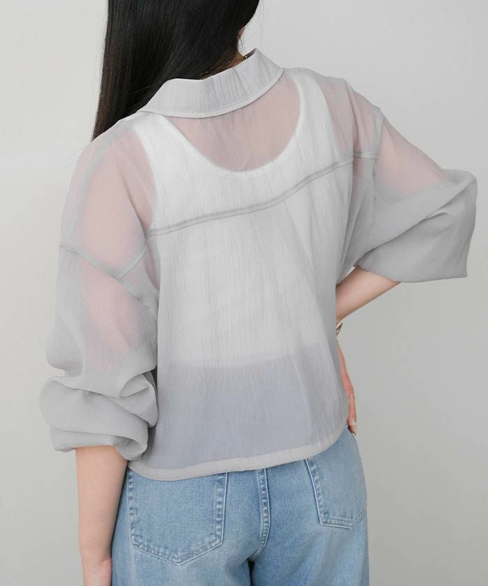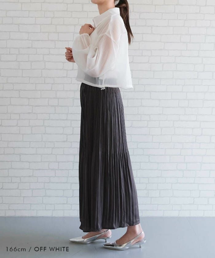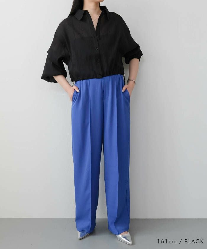 • 上品な光沢とシアー感のある裾ドロストシアーシャツ