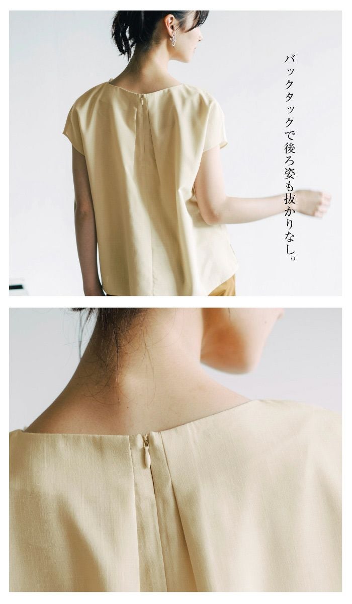 【最終値下げ価格】パール付きネックタックブラウス レディース 春 夏 秋 半袖 フレンチスリーブ | アクアガレージ aquagarage