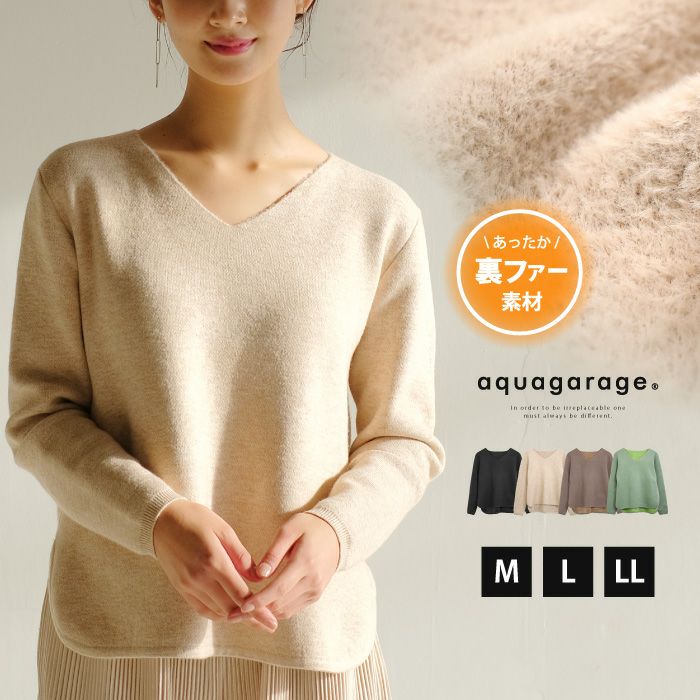【最終値下げ価格】Vネック裏ファーニットトップス レディース 秋 冬 M L LL 長袖 | アクアガレージ aquagarage