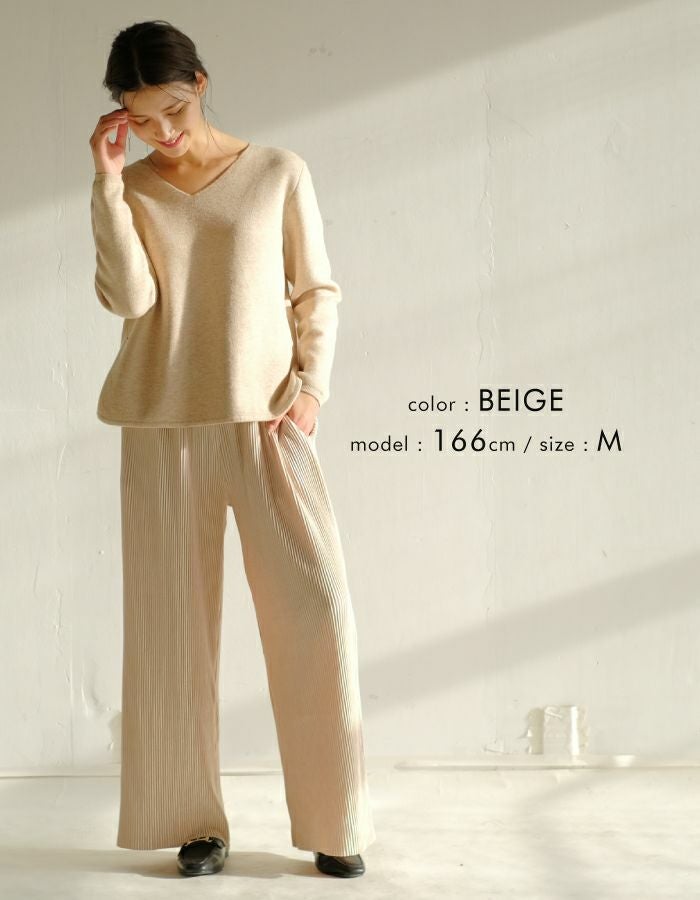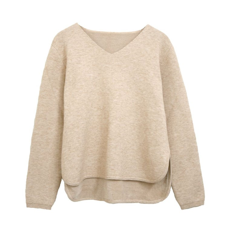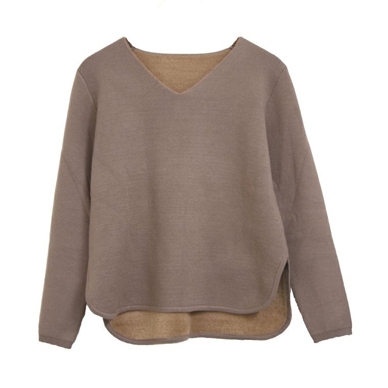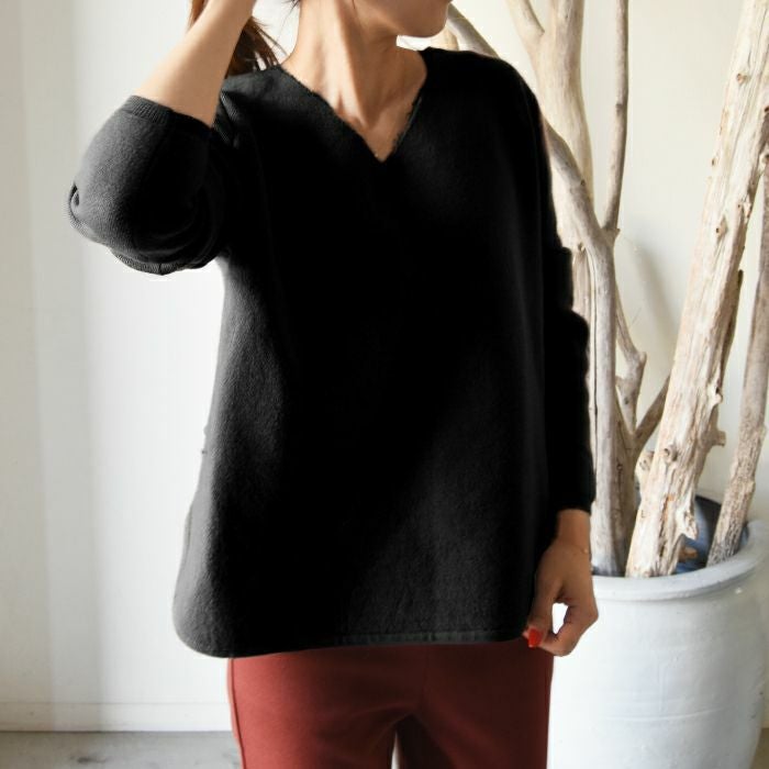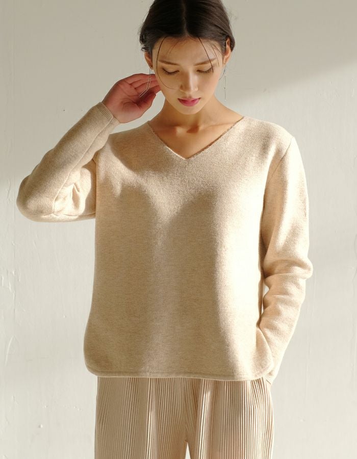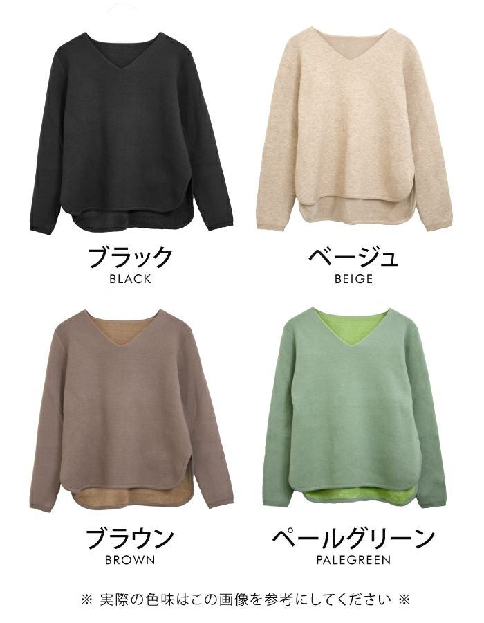 • ふわふわの裏ファーで冬もあったか。Vネックゆるニットトップス