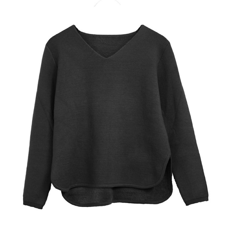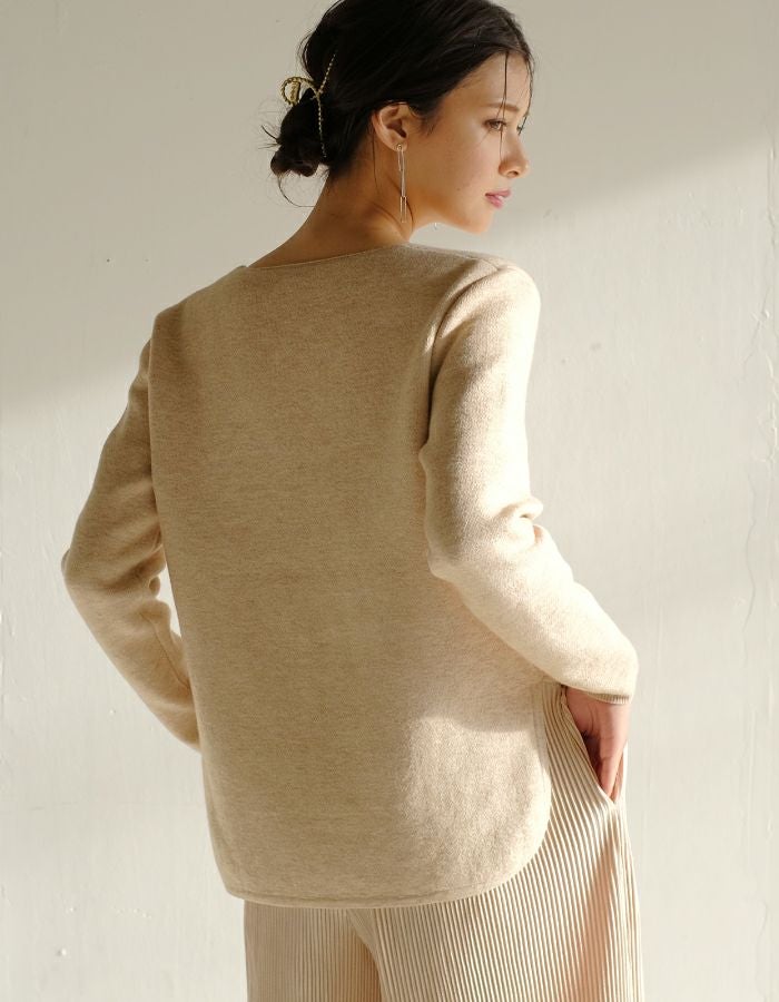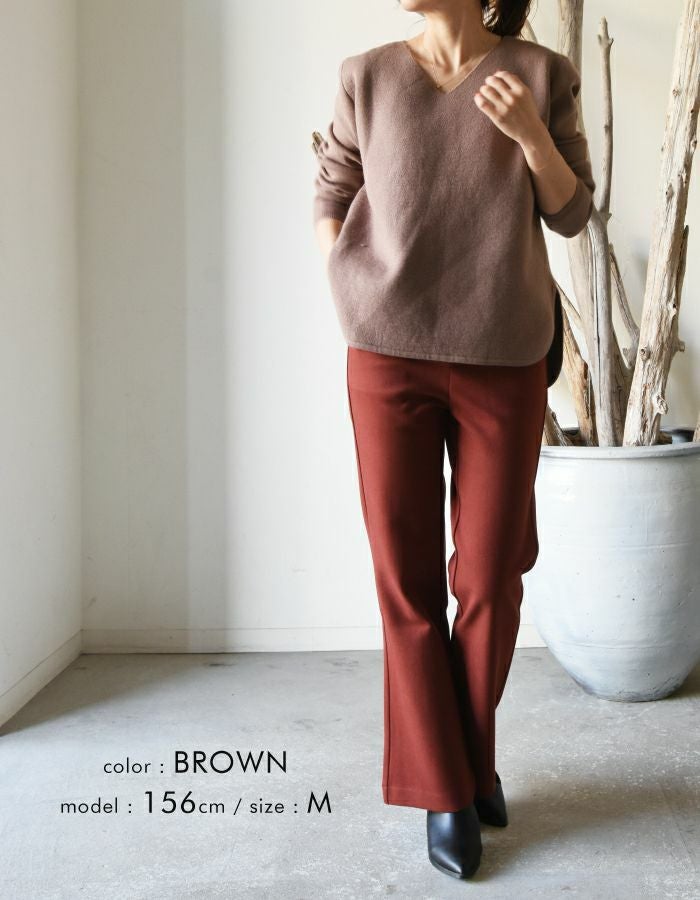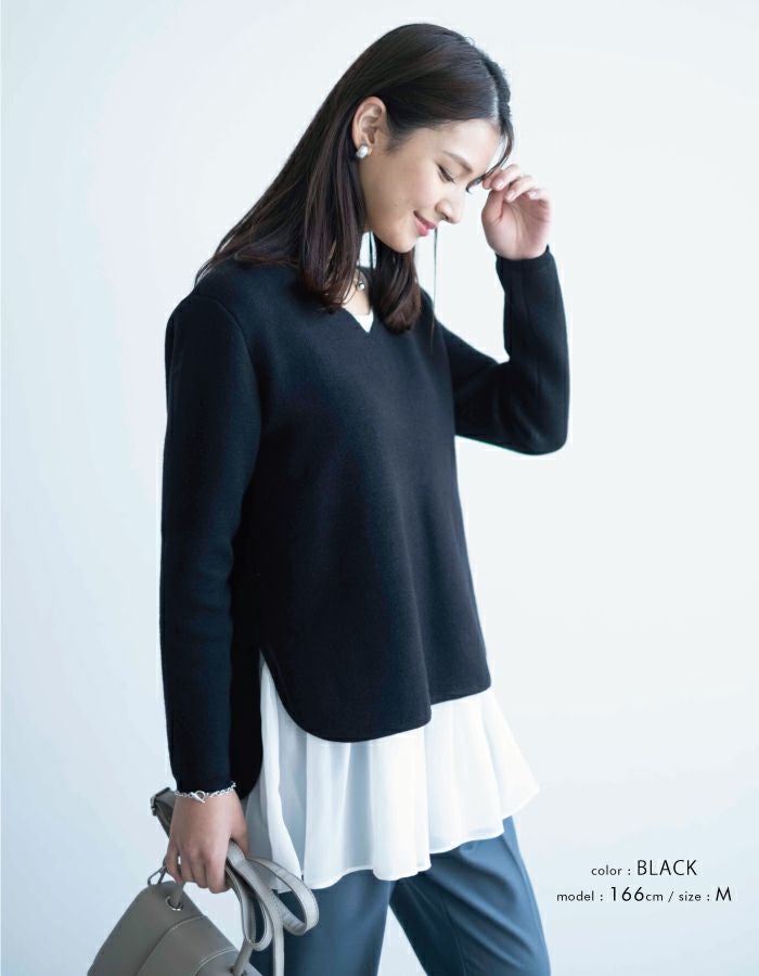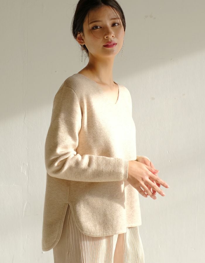 程良い開きのVネックで首元が綺麗に見えるサイドスリットニット。裏面は肌触りのいいファー生地で、厚着しなくてもあったか。シンプルでコーデに取り入れやすく、デイリー使いにも重宝します。