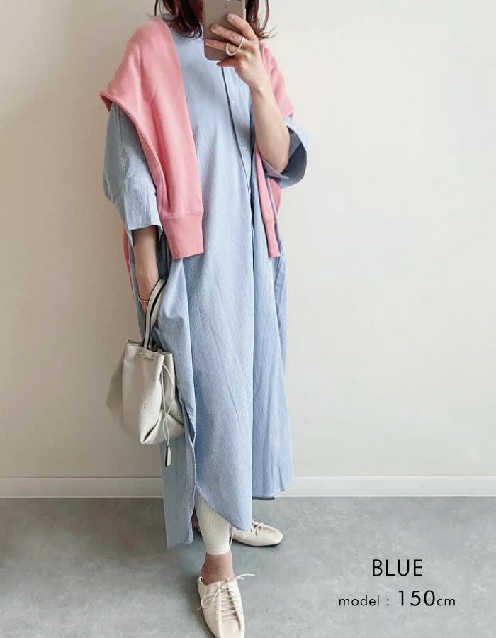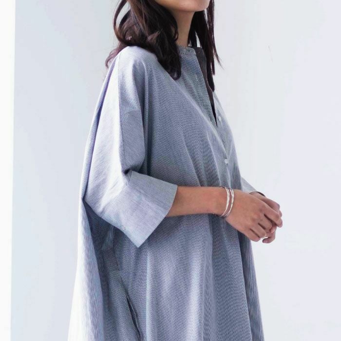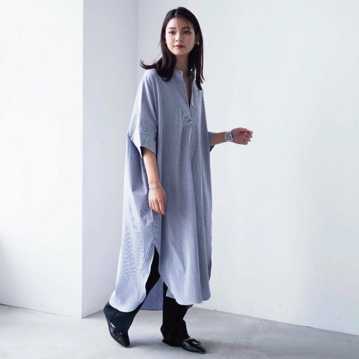 大人の抜け感スタイルを演出するワッシャーシャツワンピース。 軽やかで涼し気なコットンボイル素材とワイドシルエットで 大人のリラックススタイルにぴったり。 1枚でもパンツを合わせたレイヤードスタイルもオススメ。