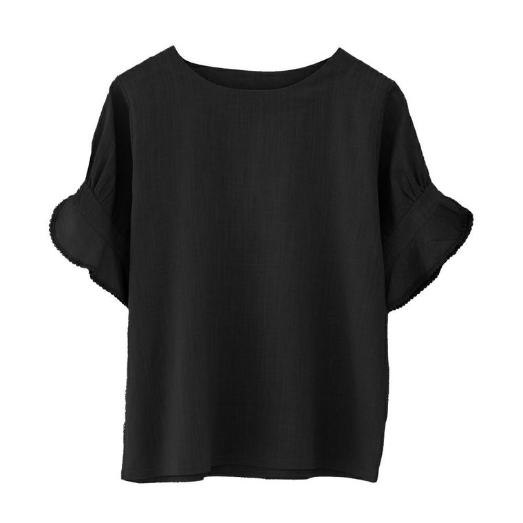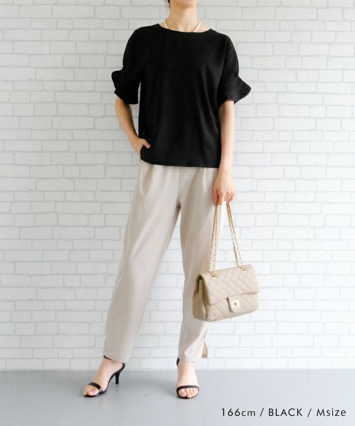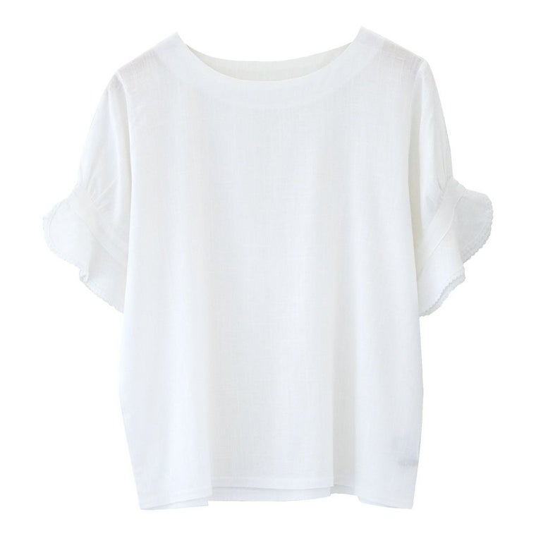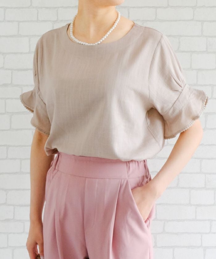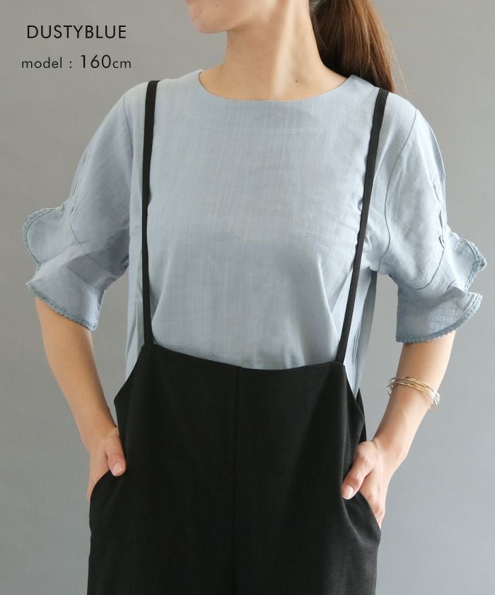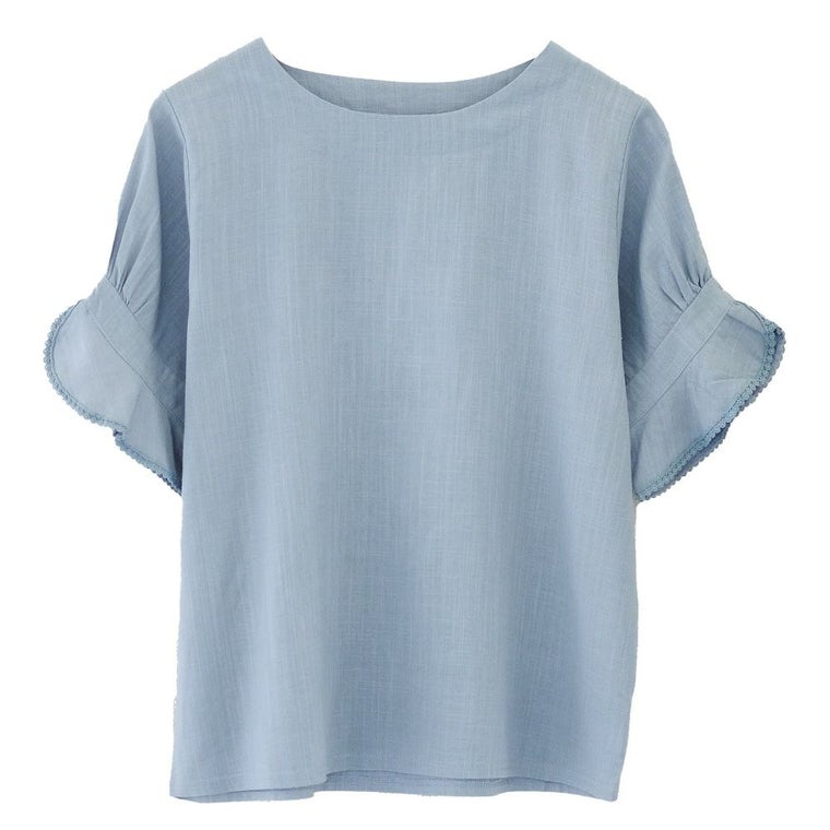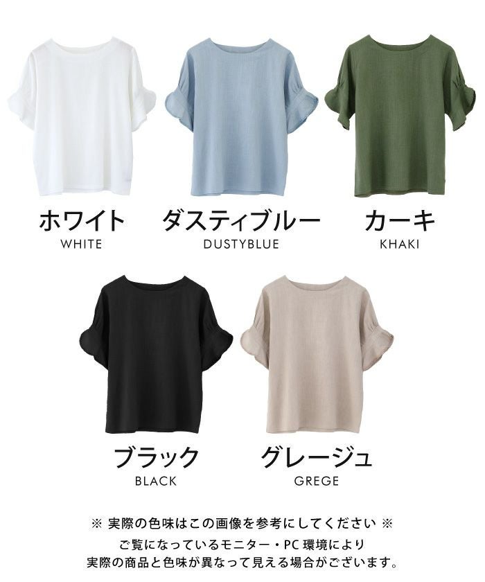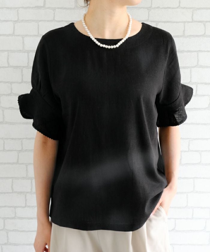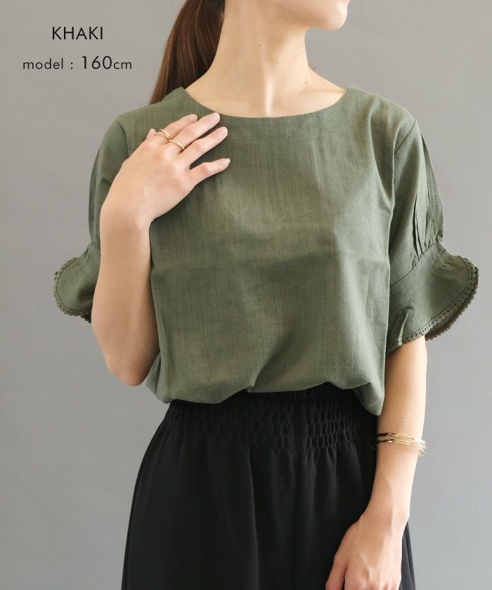 フリル袖リネンブラウス 春 夏 秋 ≪ゆうメール便配送10・代引不可≫ | アクアガレージ aquagarage
