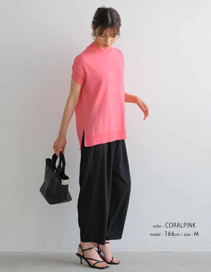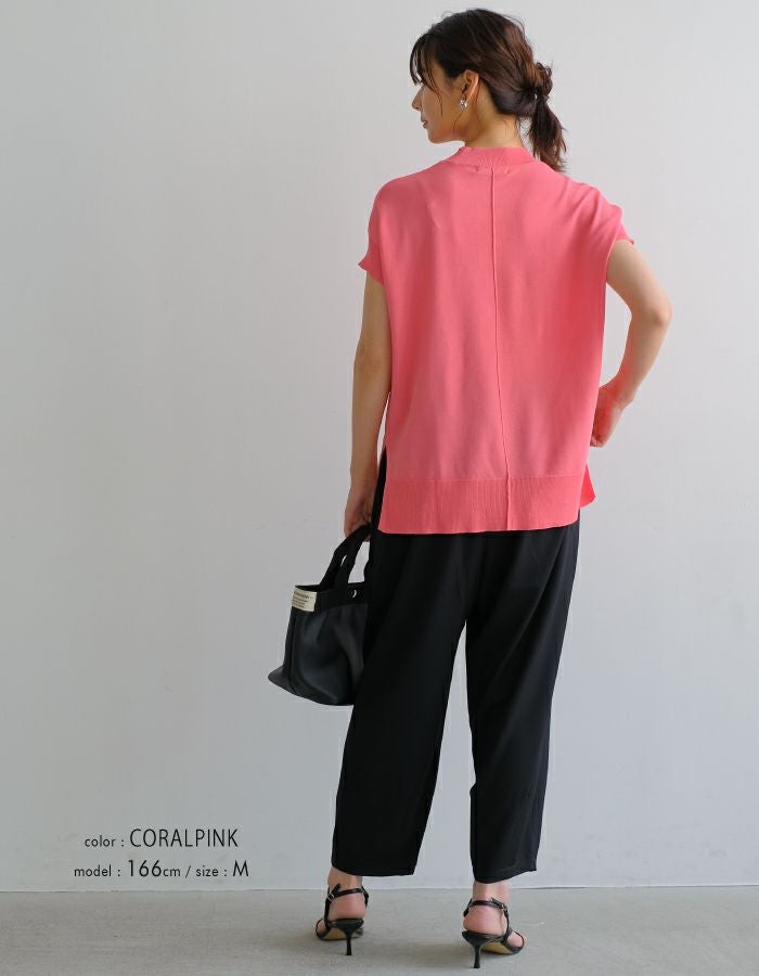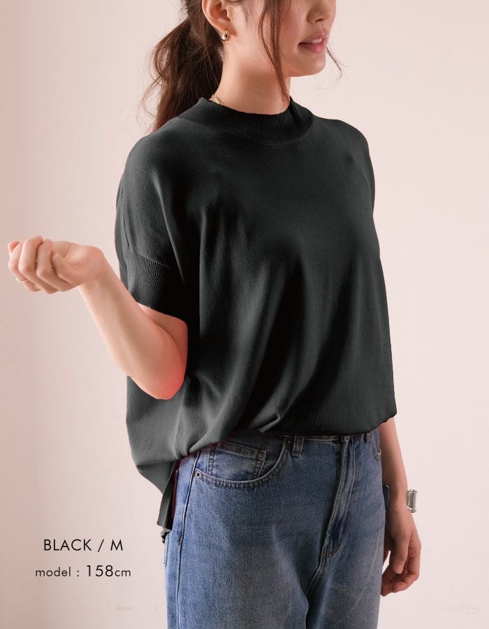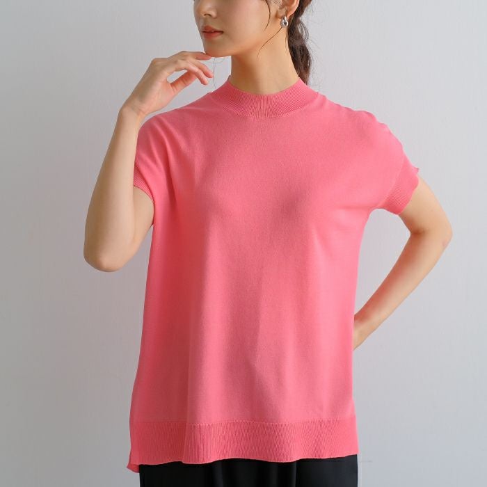 ハイネックデザインが洗練された表情を醸し出す大人のモックネックトップス。 バックステッチで後ろ姿も抜かりないデザイン。 体にフィットしすぎないゆとりあるシルエットなのでおうち時間にもぴったりな一枚です。
