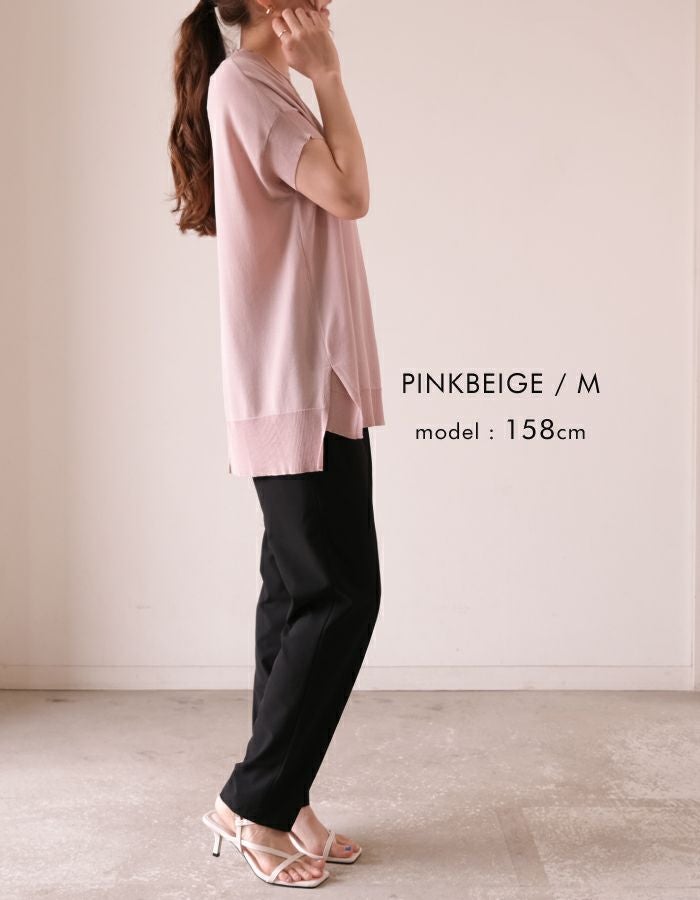 高見えする生地の良さ、洗濯してもヨレたり伸びたりしない強さ、お尻がかくれる丈と二の腕が細見えするデザイン、すべてにおいて良い。
