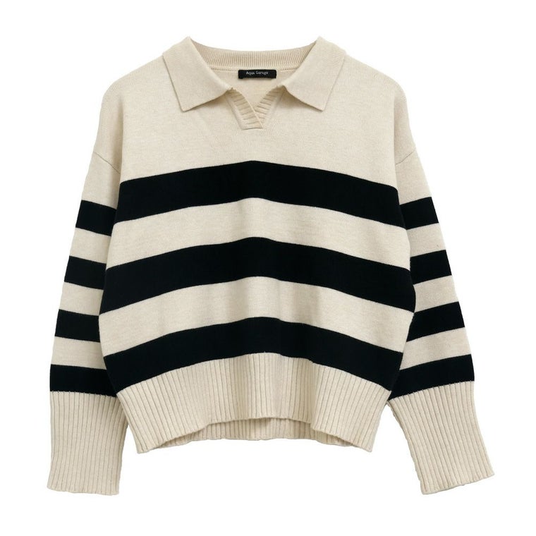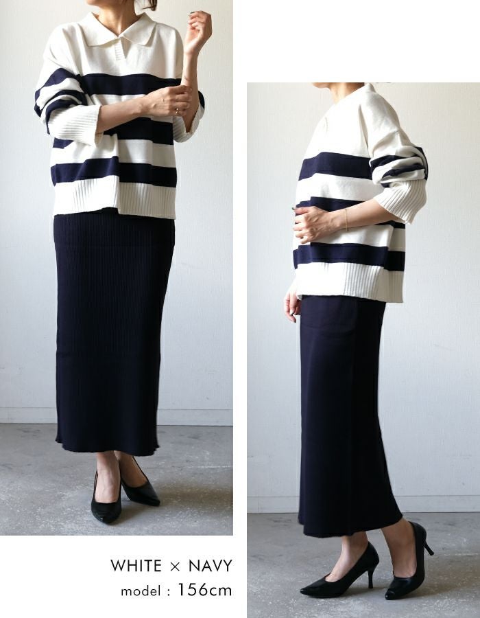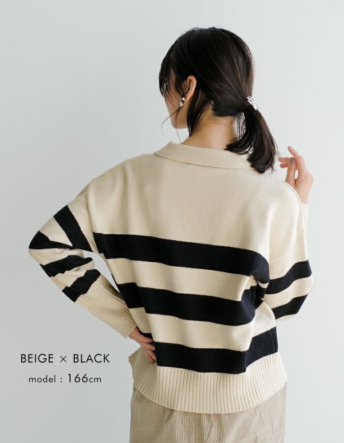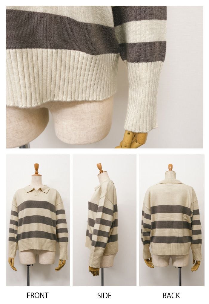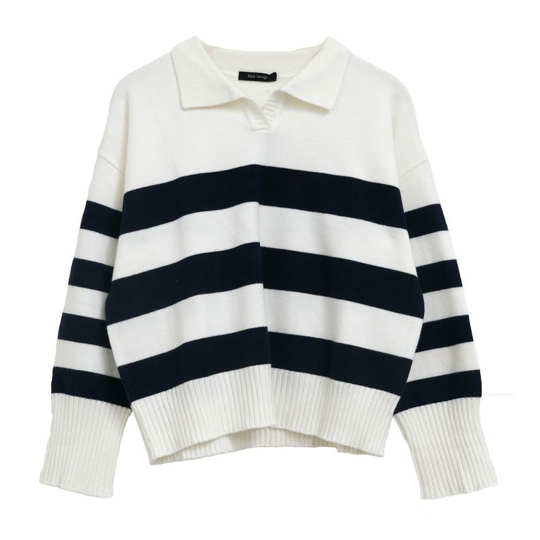 【最終値下げ価格】襟付きボーダーニットトップス レディース 秋 冬 | アクアガレージ aquagarage