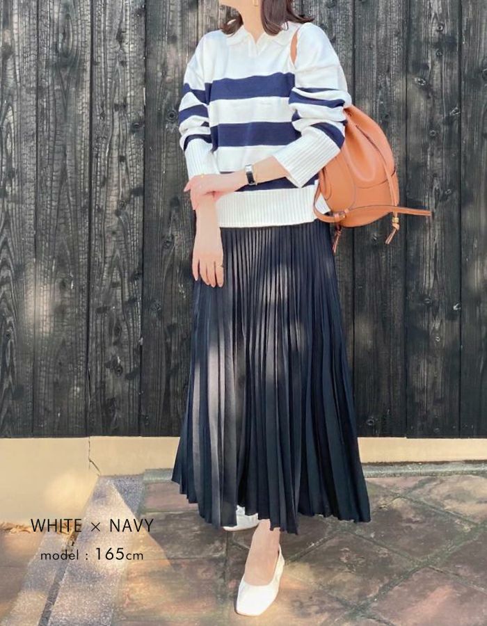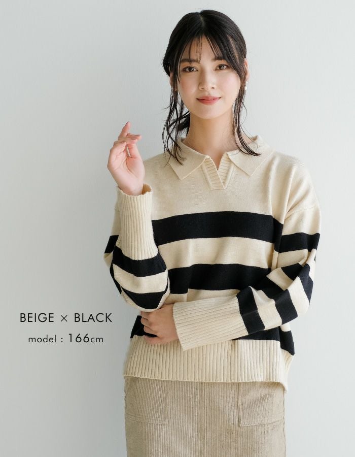 襟付きで大人らしい落ち着いた雰囲気のボーダーニット。 スキッパーネックがこなれたイメージを作り出してくれます。 やわらかく、チクチクしないニット素材だから、着心地も◎ 程よい大人カジュアル感をプラスしてくれる1枚です。