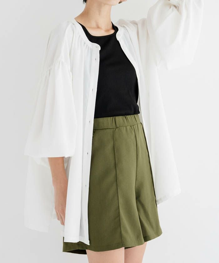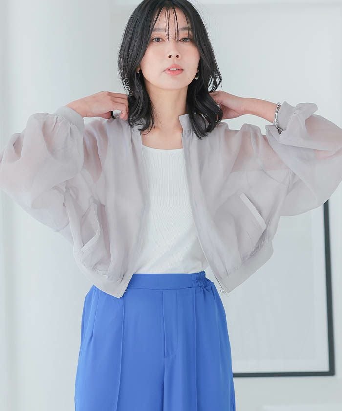シアーシャツのインナーにさらりと合わせるスタイリングがトレンド感があっておススメ。