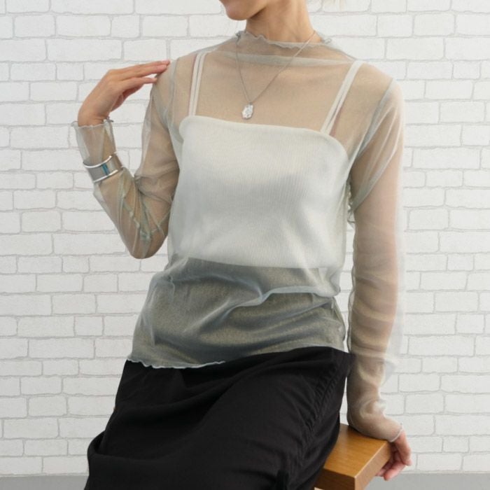 透け感のあるメッシュ素材だから、インナーで雰囲気を変えて着れるのも嬉しいポイント。