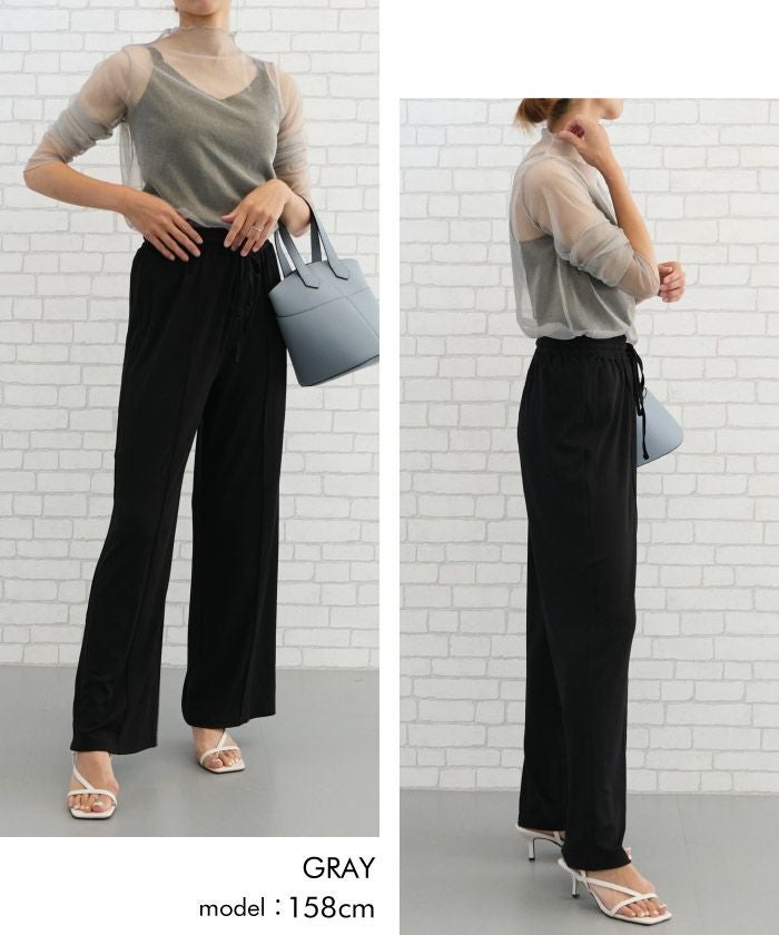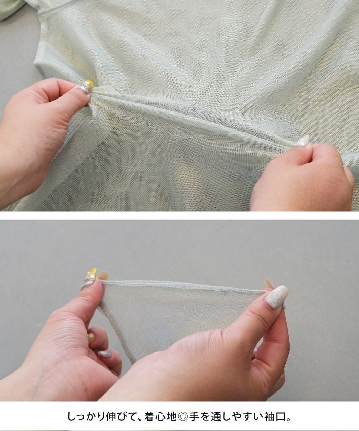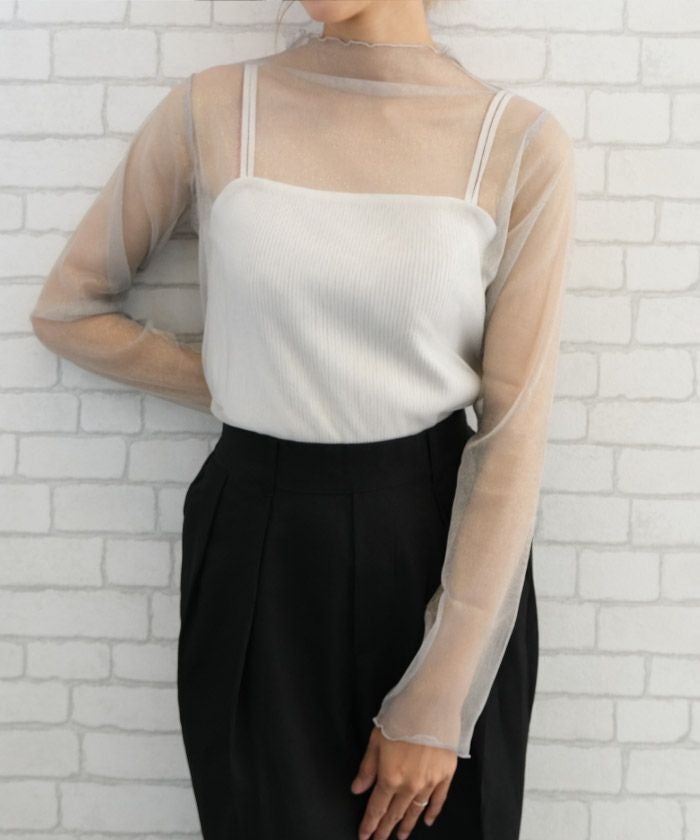 • 首元、袖口、裾部分がメロー仕上げのラメシアートップス