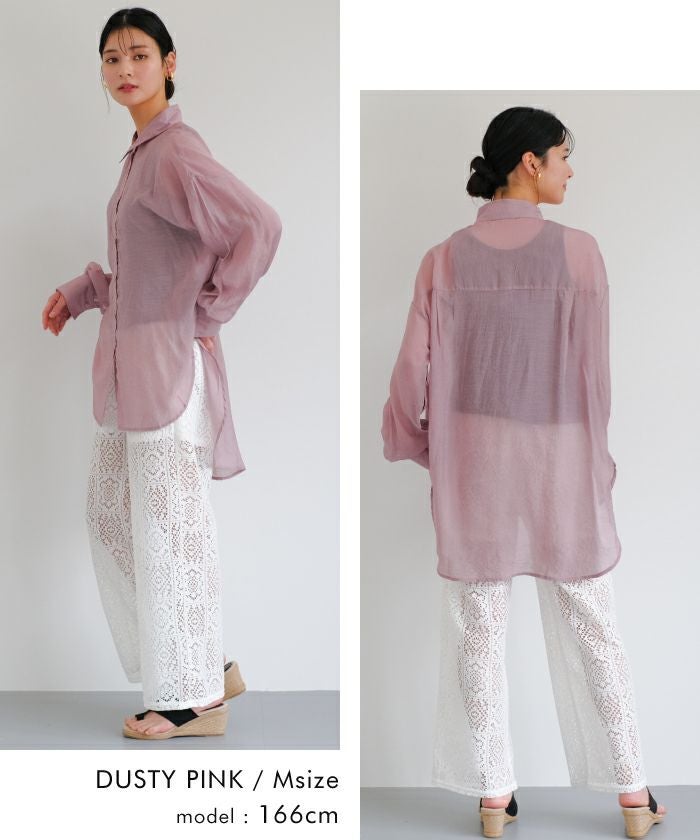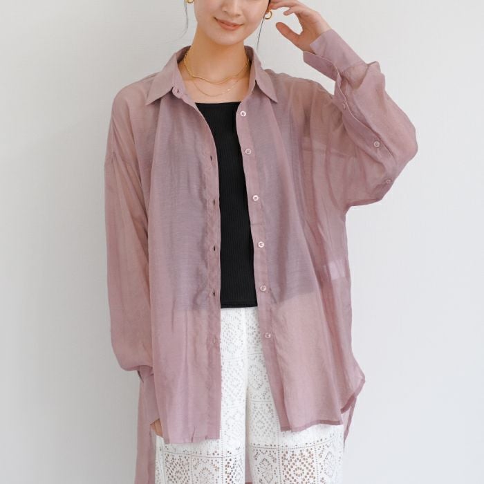 【最終値下げ価格】袖口スリットあきシアーシャツ レディース 春 秋 長袖 M L | アクアガレージ aquagarage