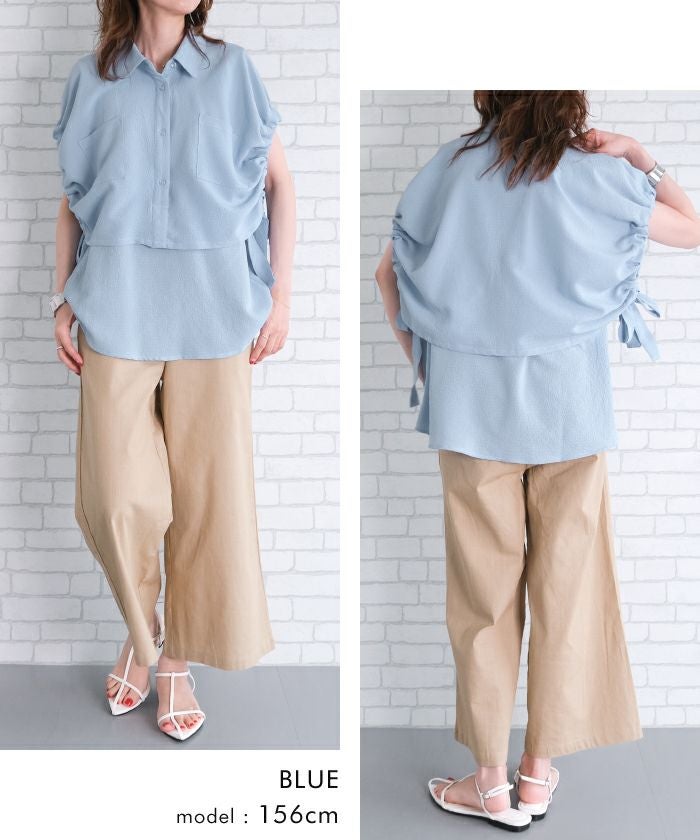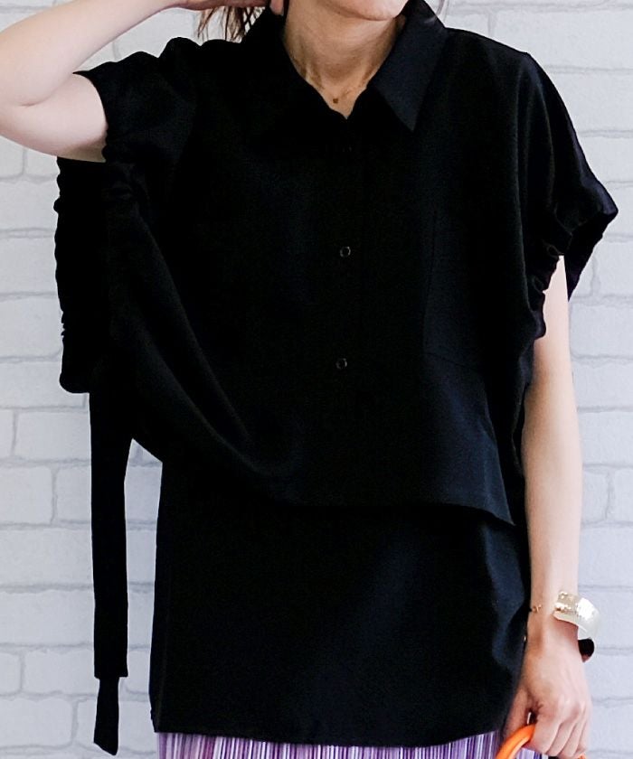 • さらっとした肌触りの袖口リボンレイヤード風ブラウス