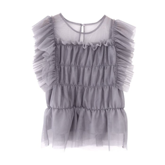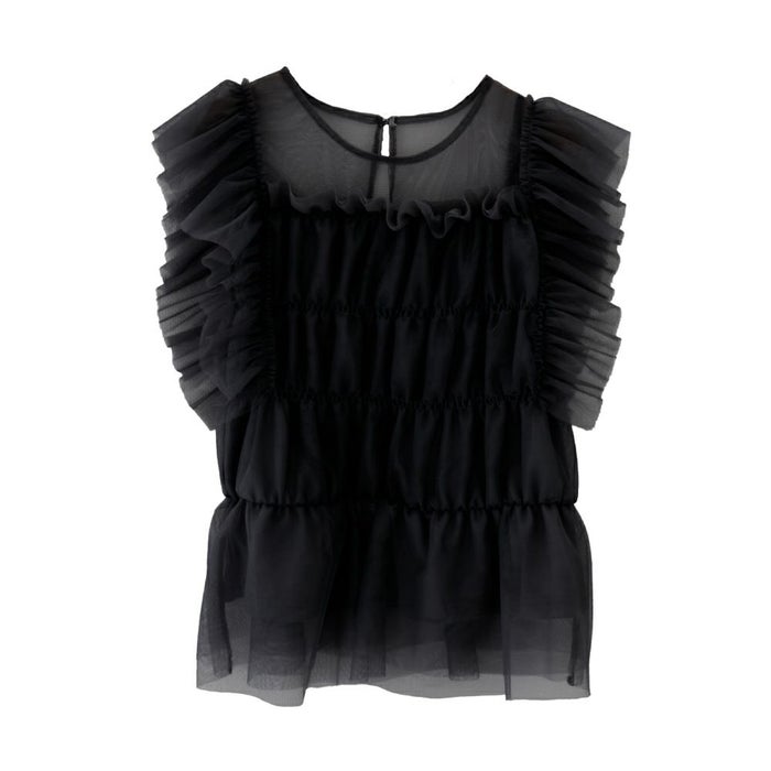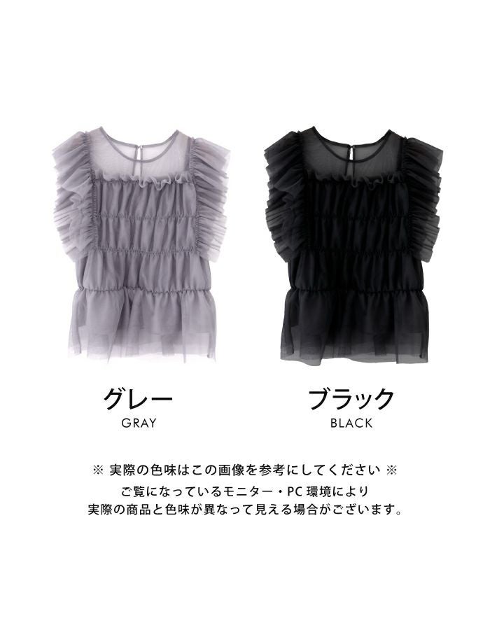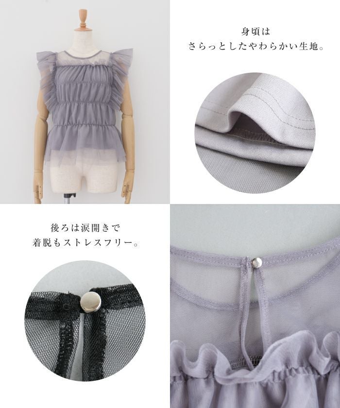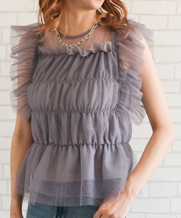 • シアー感のある繊細なチュールを重ねたフリルティアードトップス