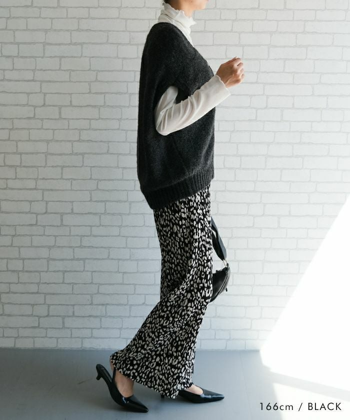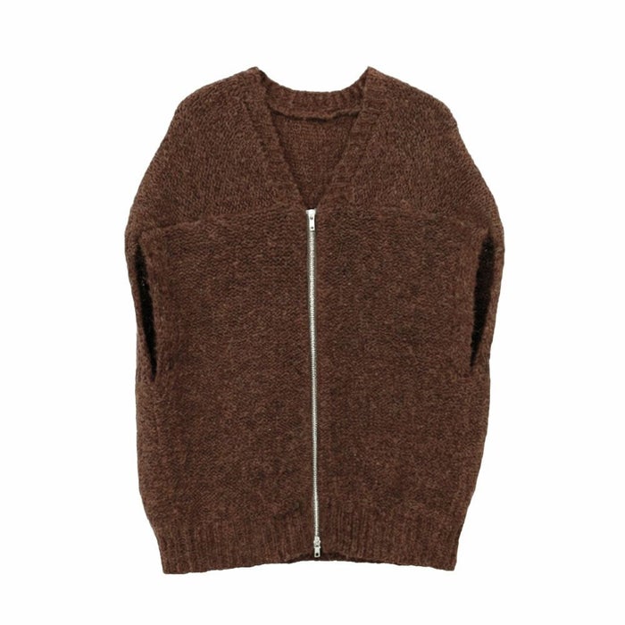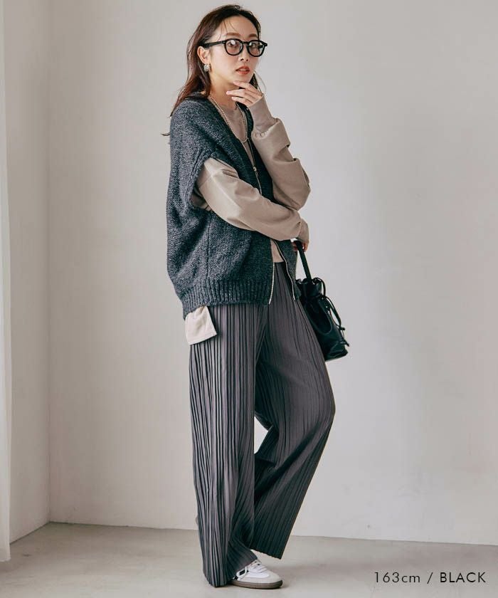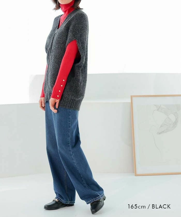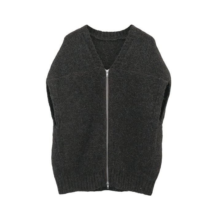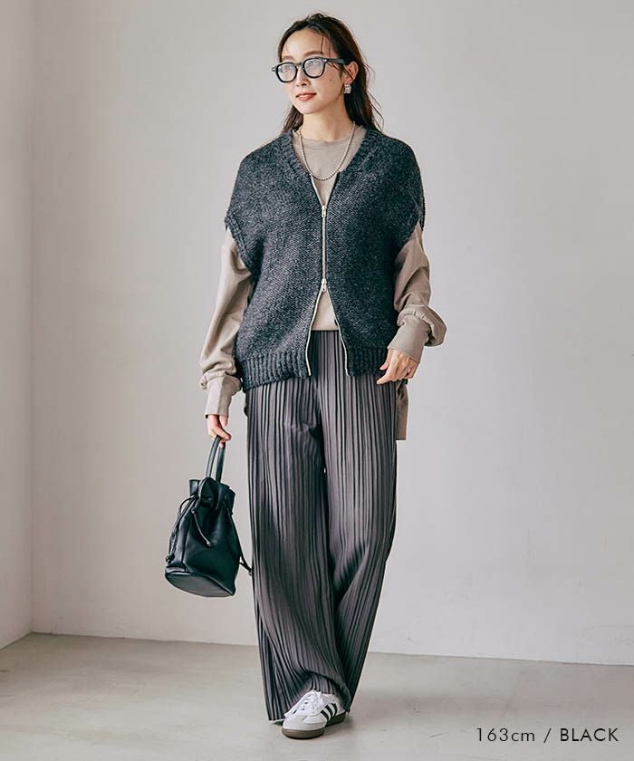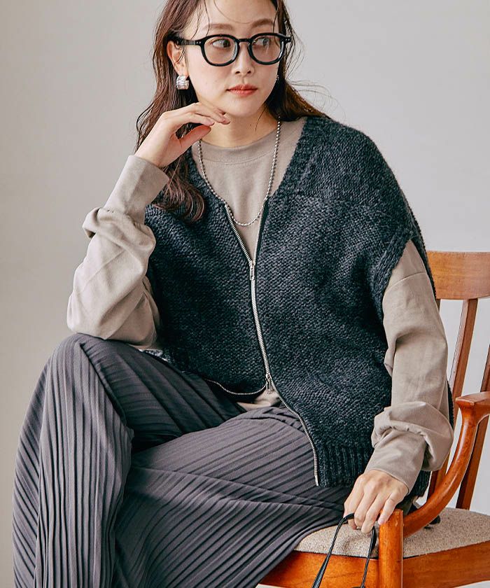ニットベストは、フロントのダブルジップでシンプルながらもモードな印象を与えます。